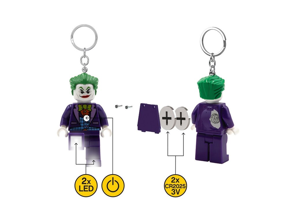Joker jako LED svítící přívěšek na batoh nebo klíče. Sběratelské LEGO postavičky s tlačítkem na hrudi a LED diodami v nohách nesmí chybět ve Vaší sbírce LEGO figurek! Výška figurky je 7,5 cm, má pohyblivé ruce i nohy. Baterie součástí balení. Doporučený věk: 6+.