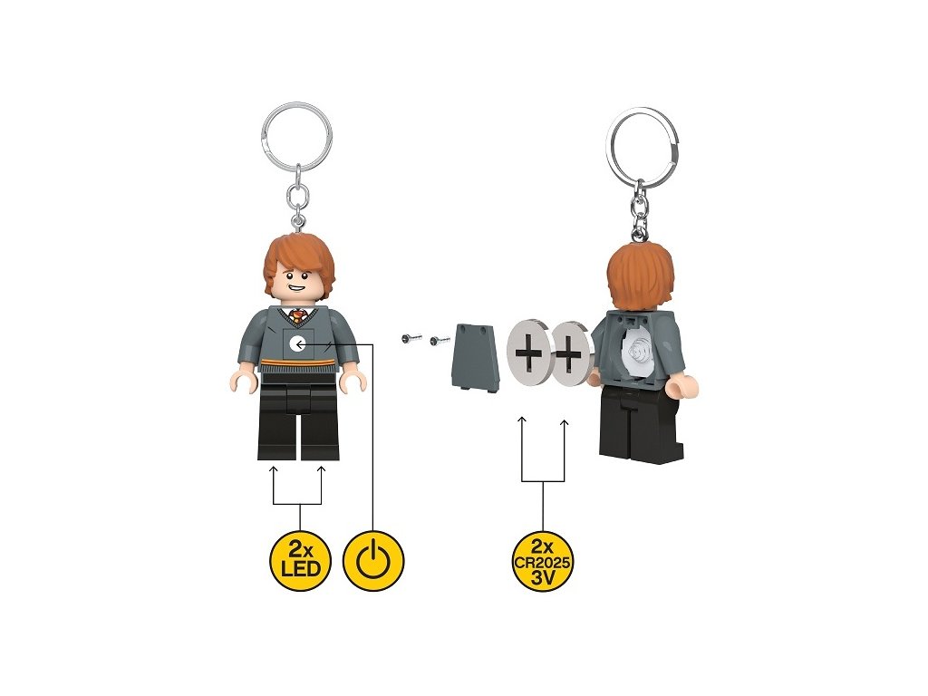 Ron Weasley jako LED svítící přívěšek na batoh nebo klíče. Sběratelské LEGO postavičky s tlačítkem na hrudi a LED diodami v nohách nesmí chybět ve Vaší sbírce LEGO figurek! Výška figurky je 7,5 cm, má pohyblivé ruce i nohy. Baterie součástí balení. Doporučený věk: 6+.
