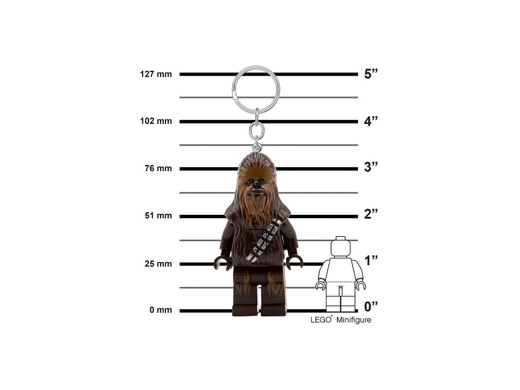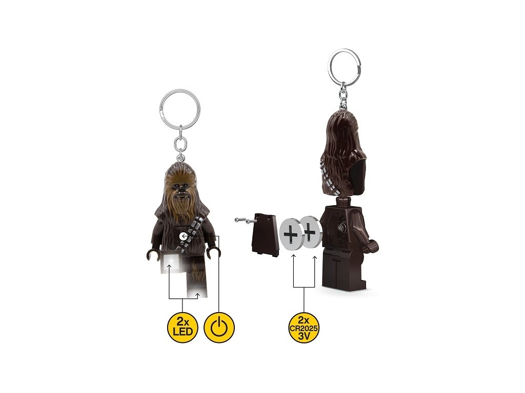Oblíbený hrdina filmové ságy Star Wars Chewbacca jako LED svítící přívěšek na batoh nebo klíče. Sběratelské LEGO postavičky s tlačítkem na hrudi a LED diodami v nohách nesmí chybět ve Vaší sbírce LEGO figurek! Výška figurky je 7,5 cm, má pohyblivé ruce i nohy. Baterie součástí balení. Doporučený věk: 6+