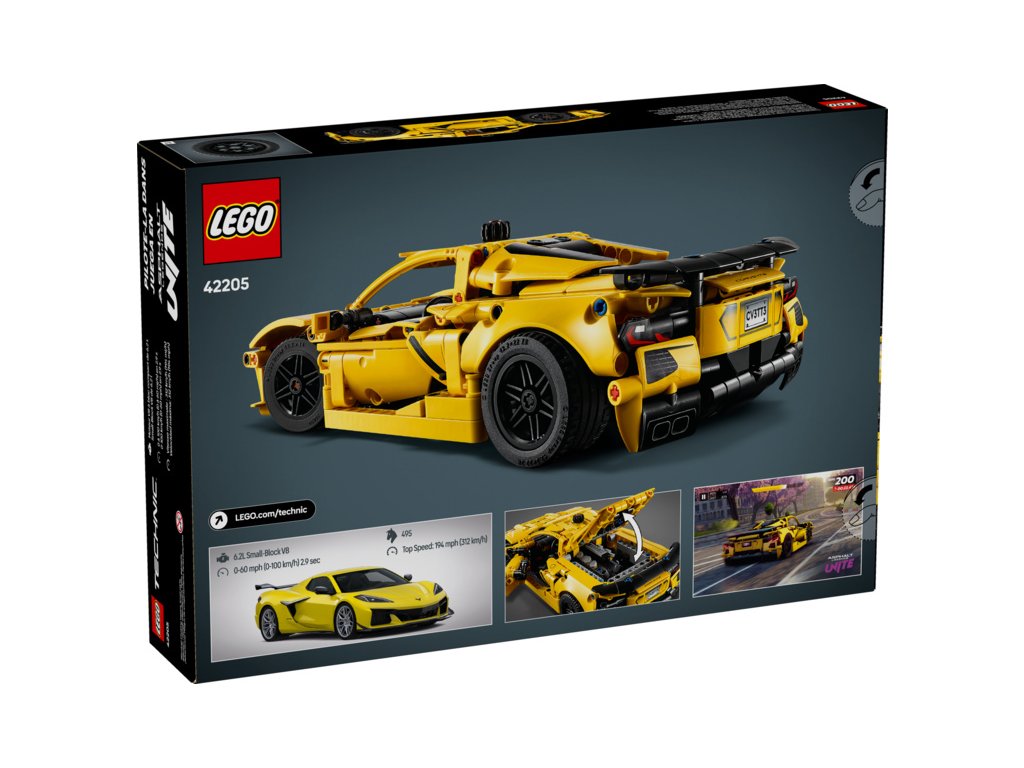 S touto propracovanou stavebnicí auta si děti od 9 let postaví vlastní model LEGO® Technic (42205) Chevrolet Corvette Stingray. Kluci, holky a milovníci rychlých aut si užijí spoustu zábavy při skládání realistických detailů a pak se pustí do prozkoumávání autentických prvků. Obdivujte úžasné barevné schéma vozu a pohybující se 8válcový motor a diferenciál. Pomocí knoflíku řiďte auto, pak otevřete dveře a kapotu a pokochejte se interiérem.