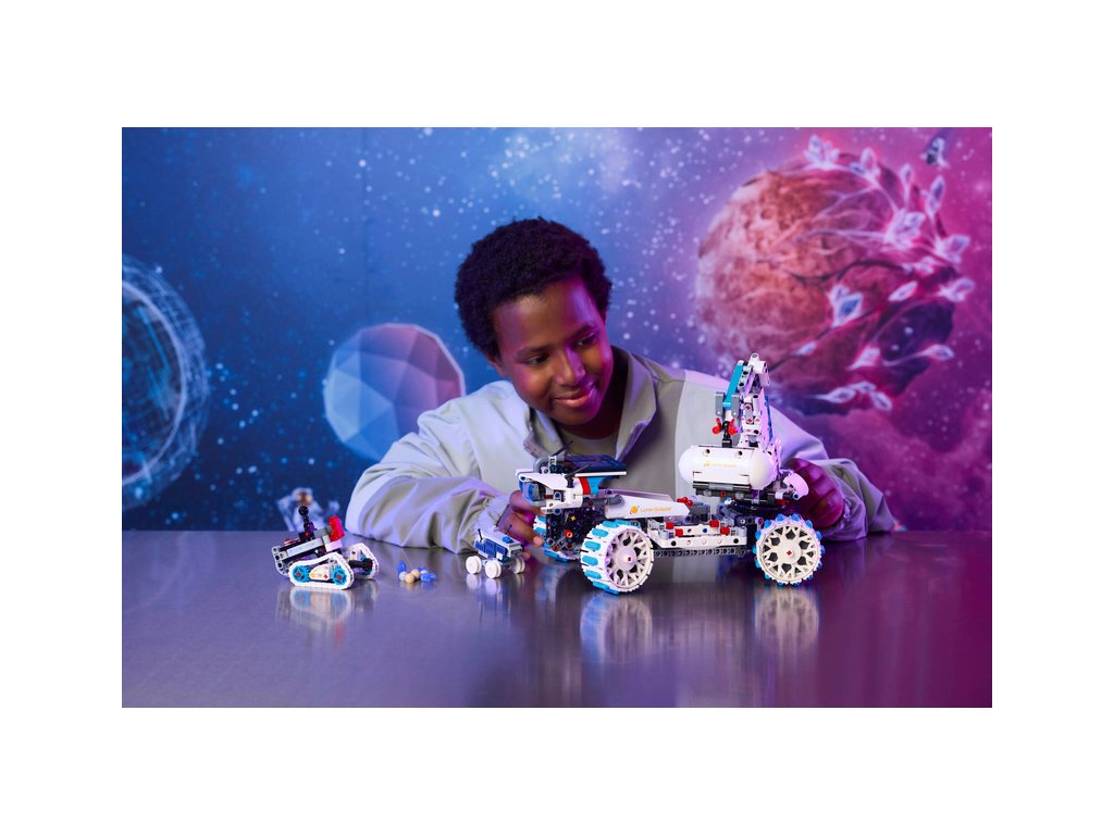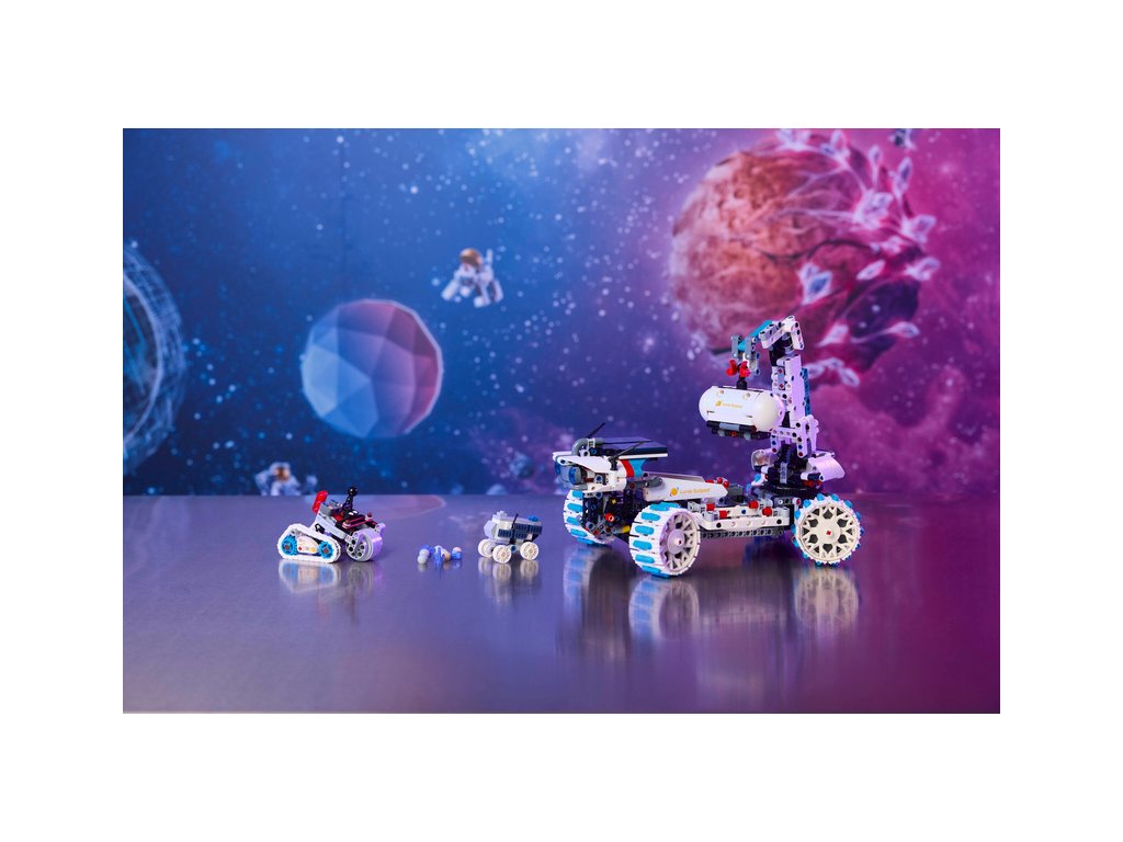 Stavebnice se pyšní spoustou funkcí, které podnítí kreativní vyprávění. Hlavním modelem je futuristický terénní lunární rover se speciálním odpružením, řízením 4 kol, výsuvnými solárními panely a otočným ramenem. Přesuňte menší těžební rover ramenem a vyšlete ho na misi s cílem získat měsíční regolit (měsíční horninu). Uložte regolit do kontejneru a vzorky a pak vyšlete na misi MAPP rover, které vám přinese další informace o povrchu Měsíce.