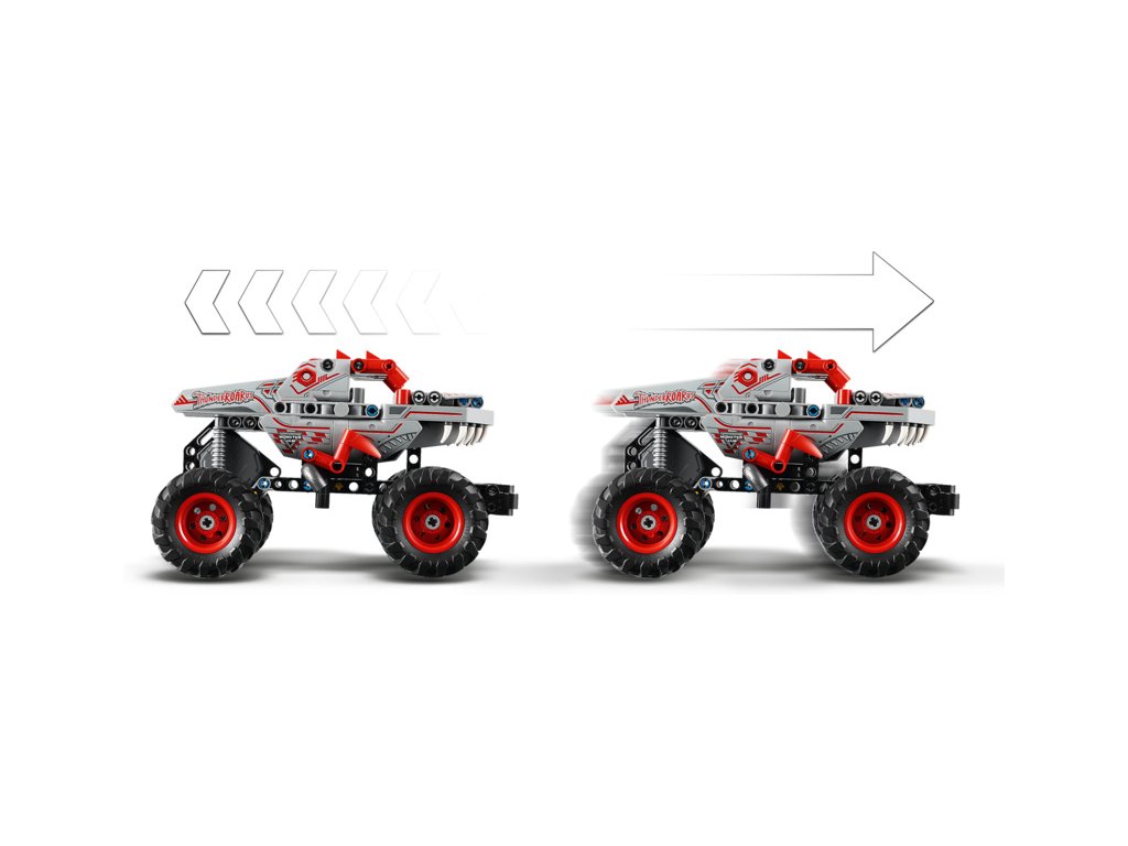 - Natahovací truck pro děti od 7 let – LEGO® Technic Monster Jam™ ThunderROARus™ s natahovacím motorem pro holky a kluky, kteří milují monster trucky a hračky s dinosaury