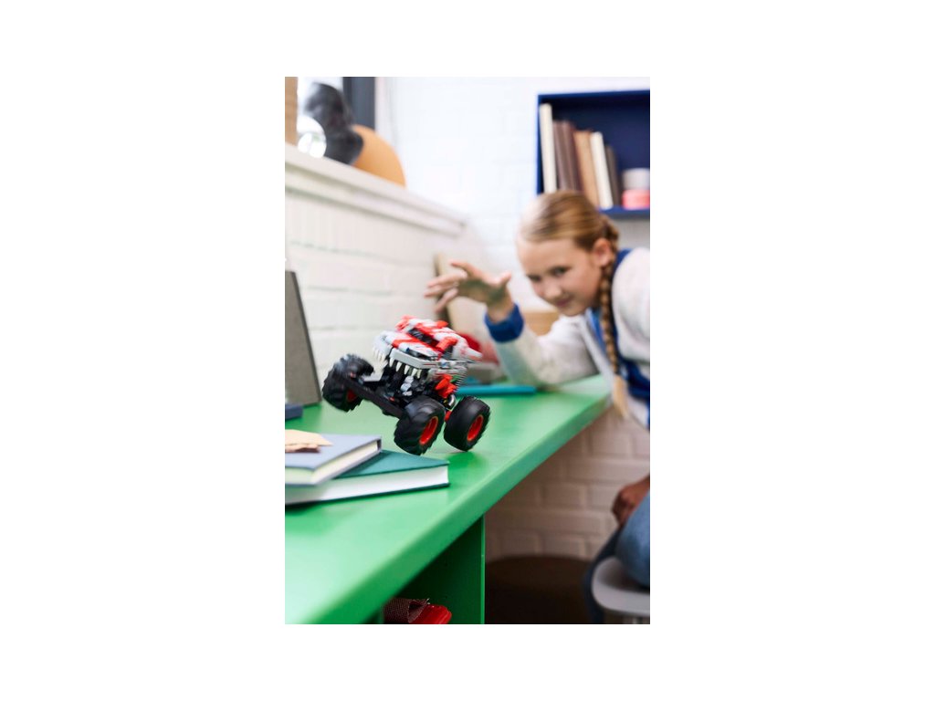 - Model trucku s natahovacím motorem – Aktivujte truck zatažením a připomeňte si strhující chvilky v aréně Monster Jam™ s rychlými triky a kaskadérskými kousky