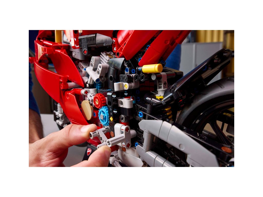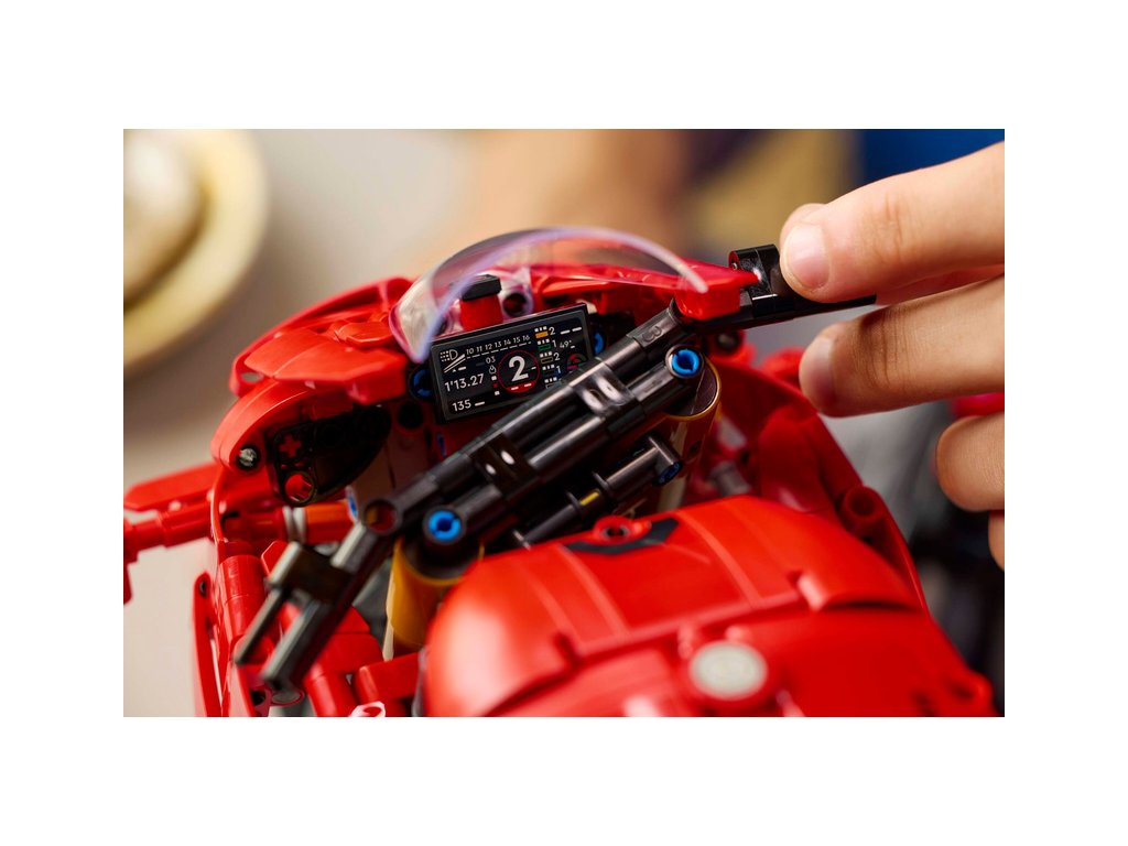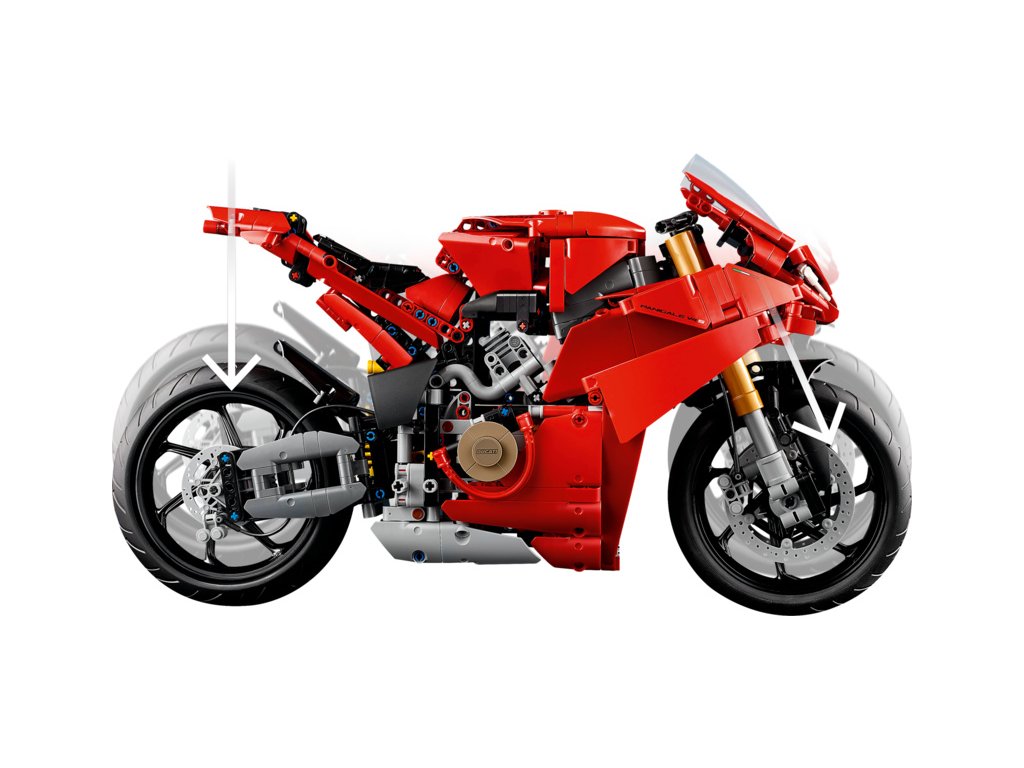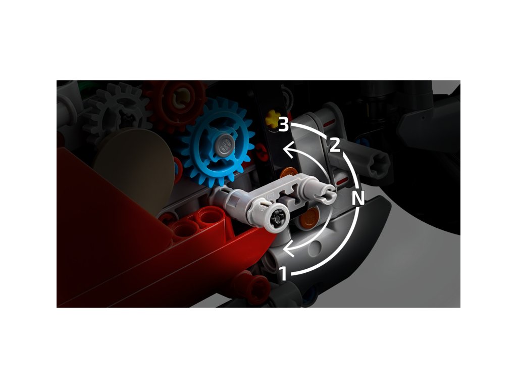 - LEGO® Technic Motorka Ducati Panigale V4 S – Model je nabitý působivými detaily a autentickými prvky, jako je přední a zadní odpružení a řízení