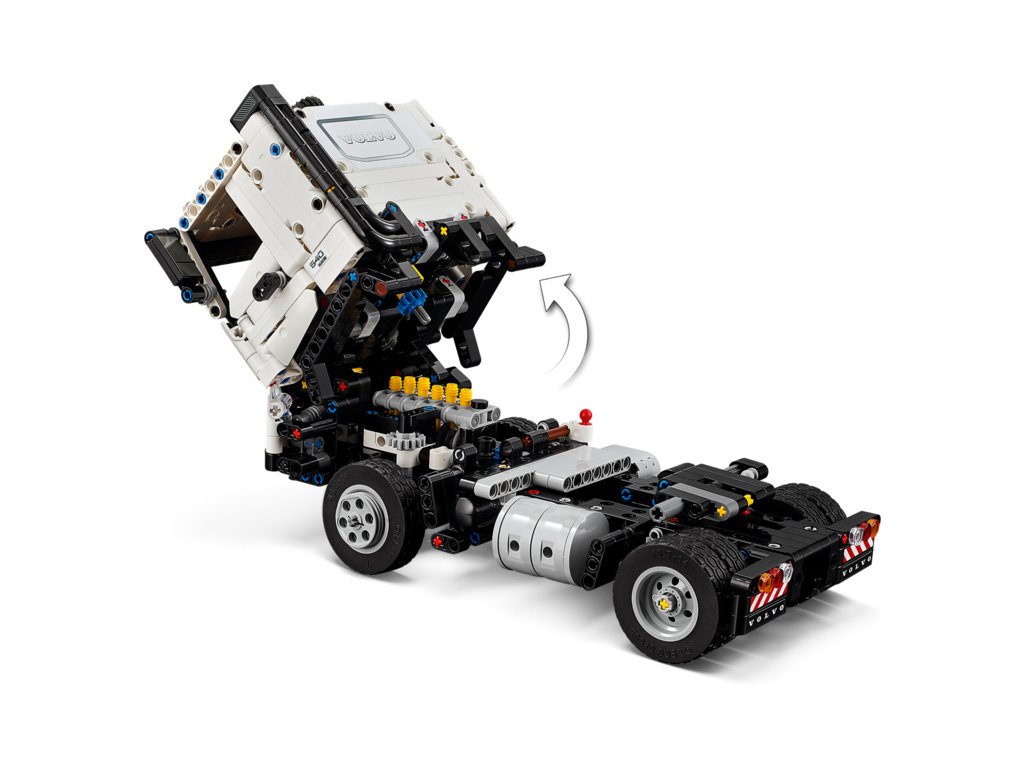 Malí stavitelé mohou otevřít dveře náklaďáku LEGO Technic a naklonit kabinu obsluhy, aby si prohlédli 6válcový motor s pohyblivými písty. Poté náklaďák nasměrují na místo, odpojí přívěs a sklopí rampu, aby se bagr rozjel.