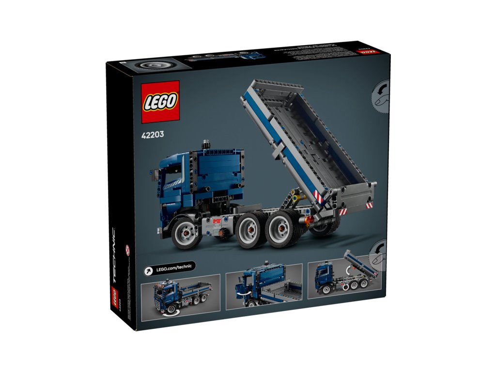 Děti od 9 let čekají nekonečná dobrodružství na staveništi se stavebnicí LEGO® Technic (42203) Nákladní sklápěč. Tato stavebnice modrého stavebního stroje umožňuje dětem od 9 let zahrát si na náročný pracovní den v roli řidiče sklápěče. Zajeďte se sklápěčem na místo a otočením knoflíku na boku náklaďáku sklopte korbu. Otevřete dveře, podívejte se dovnitř kabiny a pak s nákladním vozidlem vyrazte na další misi na staveništi.