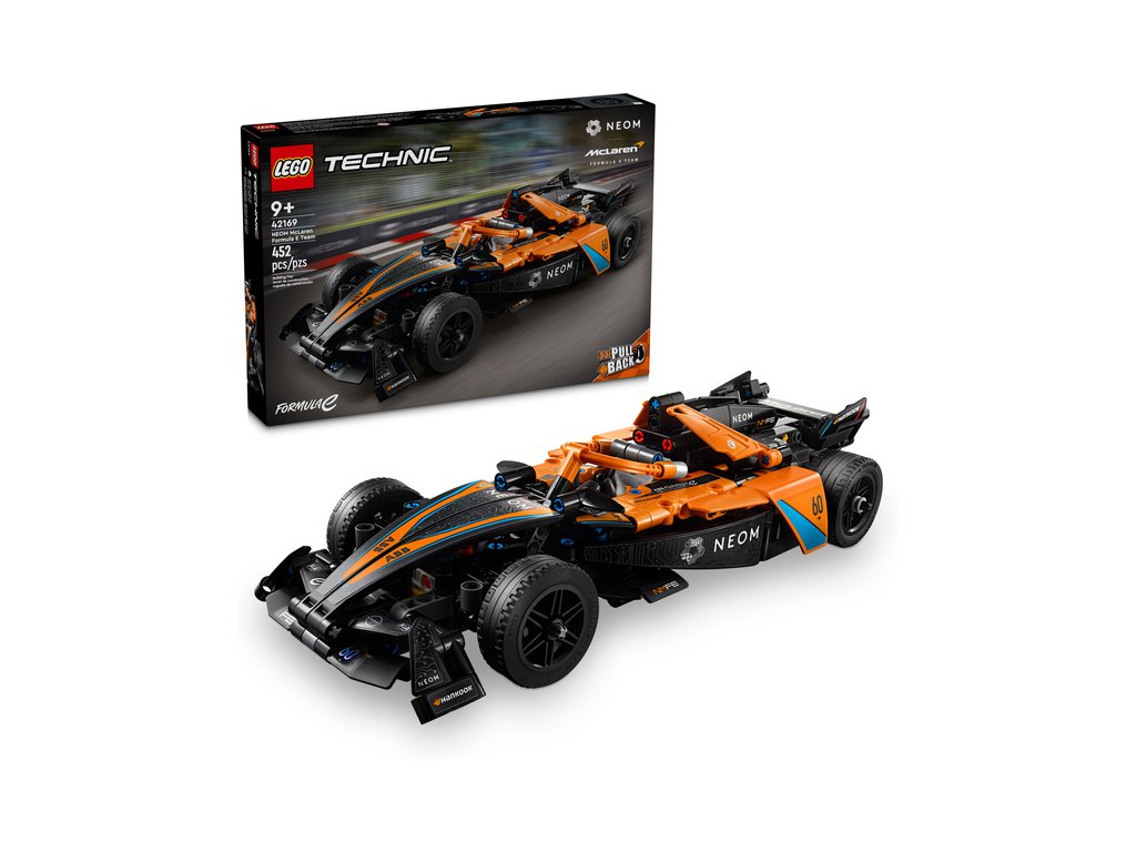 - Vozidlo NEOM McLaren Formula E z natahovacím motorem – S touto stavebnicí pro děti od 9 let si malí milovníci závodů postaví vlastní závodní auto s natahovacím motorem