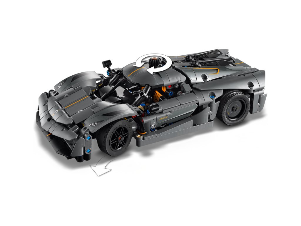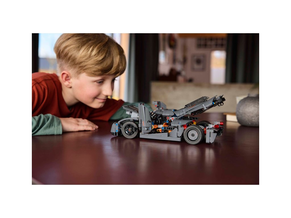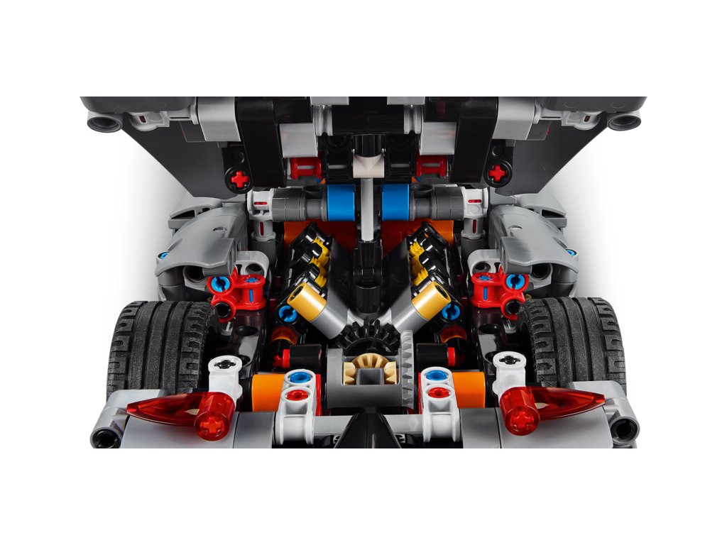 Malí stavitelé mohou při stavbě pohyblivého motoru V8 a diferenciálu prozkoumat řadu technických konceptů. Pak otestují řízení pomocí odnímatelného knoflíku, který lze vložit do přední části vozu. Úchvatnou vychytávkou v této stavebnici pro děti je systém synchro-helixových dveří, které se otevírají do úhlu 90 stupňů směrem ven, stejně jako u skutečného hyperauta.