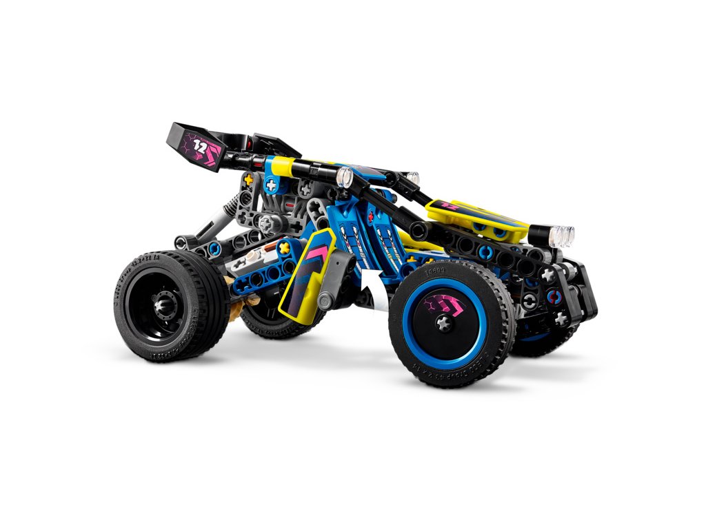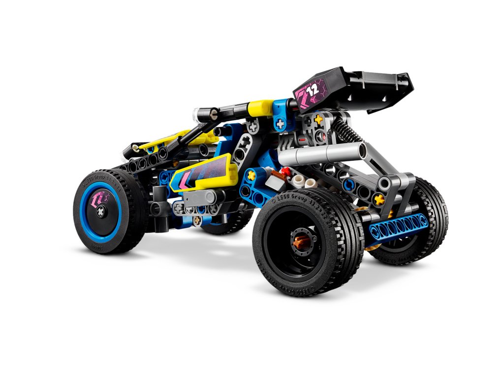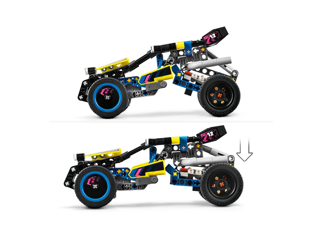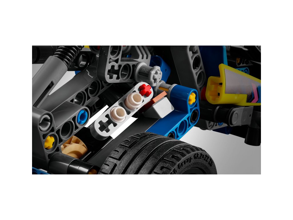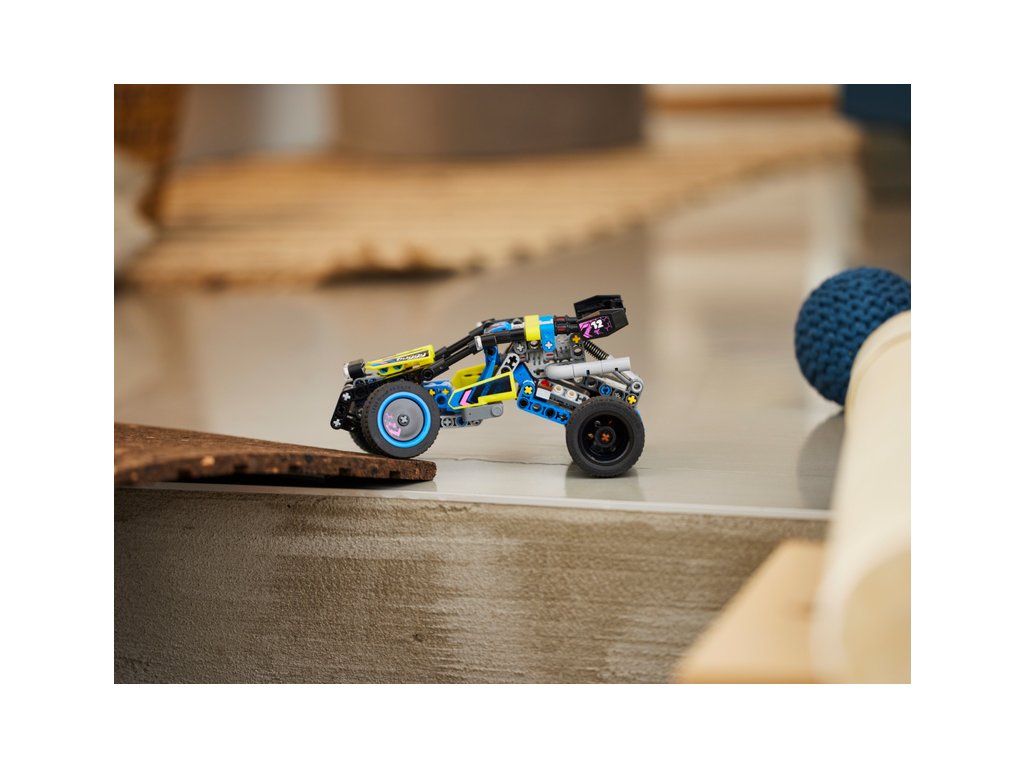 Milovníci závodních aut si užijí velkou porci zábavy při stavění i hraní s modelem LEGO® Technic Terénní závodní bugina.