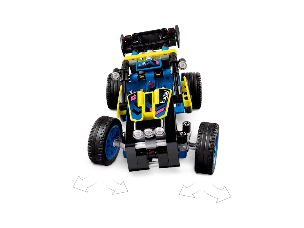 - Stavebnice pro děti od 8 let – Milovníci závodních aut si užijí velkou porci zábavy při stavění modelu LEGO® Technic Terénní závodní bugina i při hraní