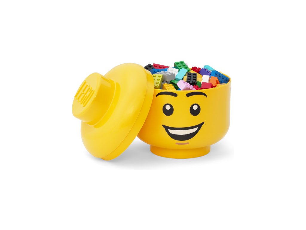 Skvělá víceúčelová LEGO hlava malá, která dětem může posloužit jako úložný box pro LEGO kostky. Taky do ní můžete uložit menší hračky, sladkosti, ale může sloužit i k vytváření obřích LEGO staveb. S takovým pomocníkem bude úklid hrou. Je vyrobena z odolného plastu. Úložné boxy v podobě hlavy se dají na sebe skládat, takže si můžeš vytvořit výstavku různých obličejů, kterou ohromíš všechny kamarády! Box se skládá ze dvou částí.