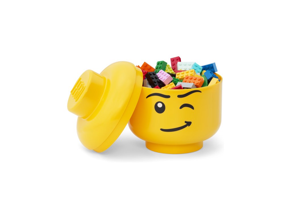 Skvělá víceúčelová LEGO hlava malá, která dětem může posloužit jako úložný box pro LEGO kostky. Taky do ní můžete uložit menší hračky, sladkosti, ale může sloužit i k vytváření obřích LEGO staveb. S takovým pomocníkem bude úklid hrou. Je vyrobena z odolného plastu. Úložné boxy v podobě hlavy se dají na sebe skládat, takže si můžeš vytvořit výstavku různých obličejů, kterou ohromíš všechny kamarády! Box se skládá ze dvou částí.