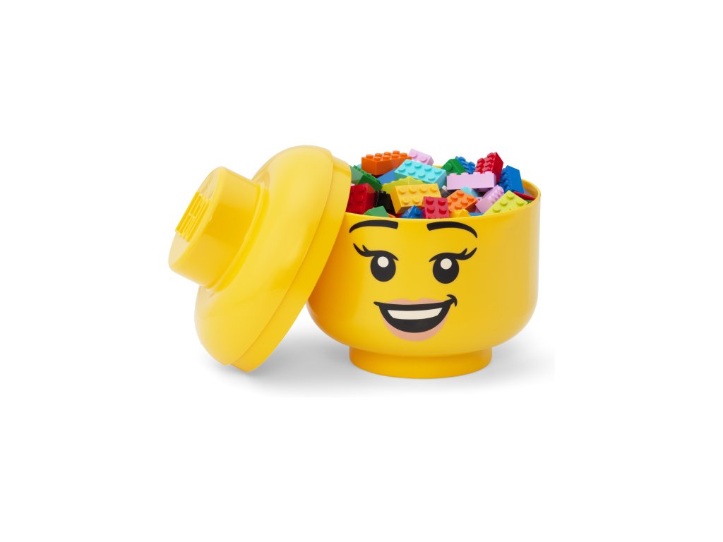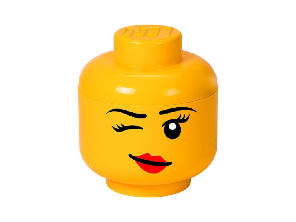 Skvělá víceúčelová LEGO hlava malá, která dětem může posloužit jako úložný box pro LEGO kostky. Taky do ní můžete uložit menší hračky, sladkosti, ale může sloužit i k vytváření obřích LEGO staveb. S takovým pomocníkem bude úklid hrou. Je vyrobena z odolného plastu. Úložné boxy v podobě hlavy se dají na sebe skládat, takže si můžeš vytvořit výstavku různých obličejů, kterou ohromíš všechny kamarády! Box se skládá ze dvou částí.