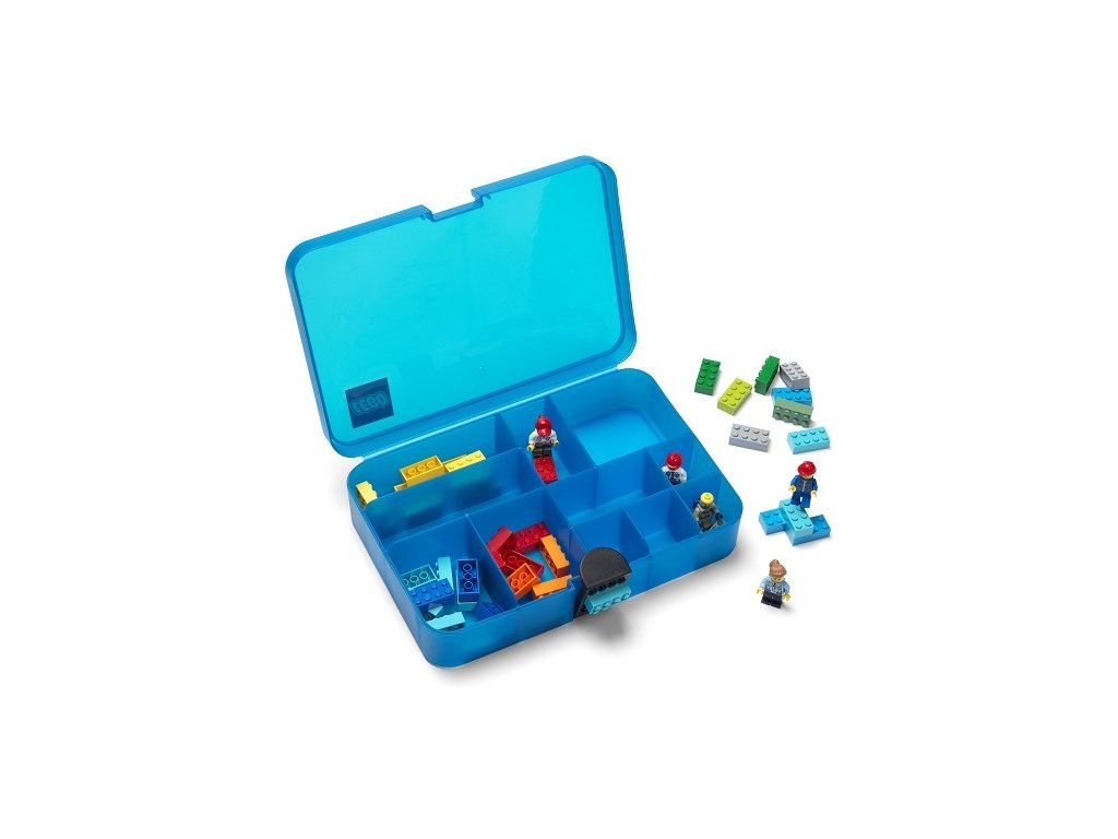 LEGO úložný box s přihrádkami, pro oblíbené LEGO minifigurky nebo LEGO kostky. Rozměry 178 x 267 x 66 mm. Boxy se dají skládat na sebe a proto je využijí nejen děti, ale i dospělí. Uzavírací klip jako Lego deska.
