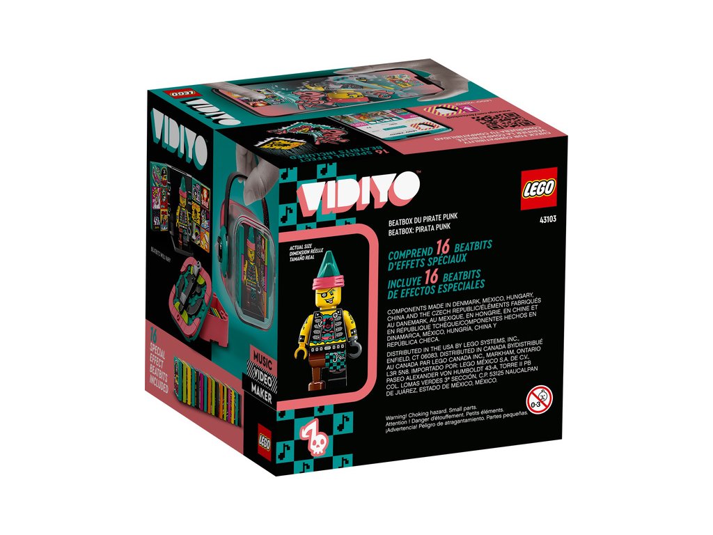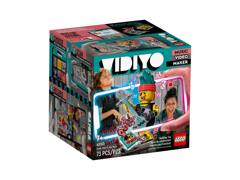 - Inspirujte děti k tvoření vlastních videoklipů se sadou LEGO® VIDIYO™ Punk Pirate BeatBox (43103). BeatBox obsahuje minifigurku piráta punkáče s kytarou a 16 BeatBitů – 14 náhodných a 2 jedinečné pro danou postavu.