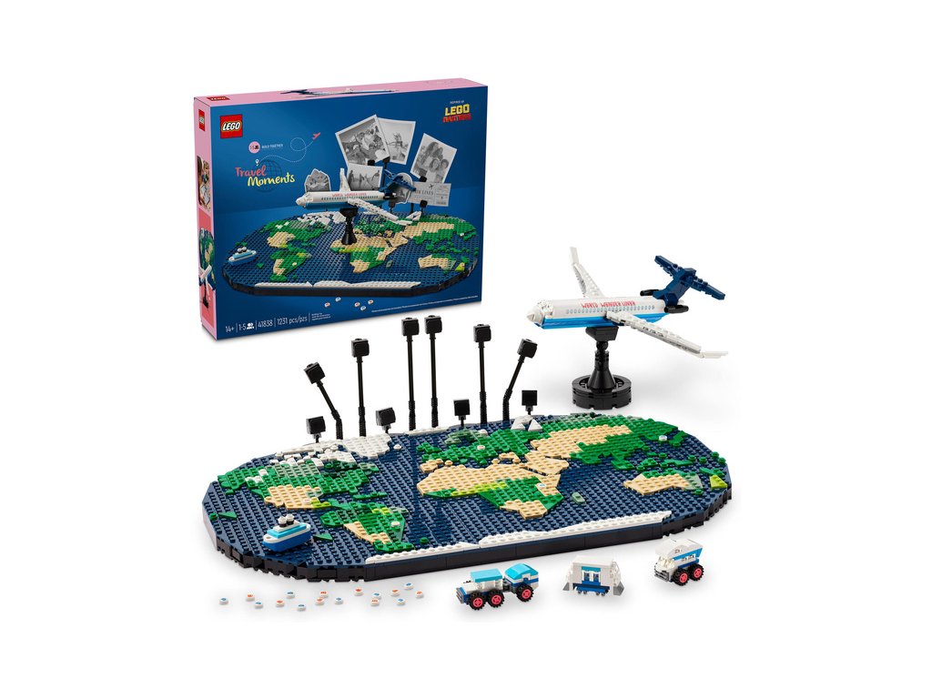 Rodiny a děti od 14 let se se stavebnicí Vzpomínky z cest (41838) mohou těšit na kreativní stavění. Tato nápaditá stavebnice LEGO® představuje zábavný dárek pro cestovatele a rodiny, které milují dobrodružství. Součástí je sestavitelná mapa světa, letadlo, 4 mikromodely vozidel, 20 dílků s místy, 10 držáků na fotografie a 5 brožurek s návodem na stavění. Rodiny se podělí o své oblíbené vzpomínky z cest nebo si vysní nová dobrodružství při stavění letadla Wonderliner a mapy. Pak mapu upraví tak, aby ukazovala navštívené země nebo plánované výlety – a mohou ji měnit po každém dobrodružství!