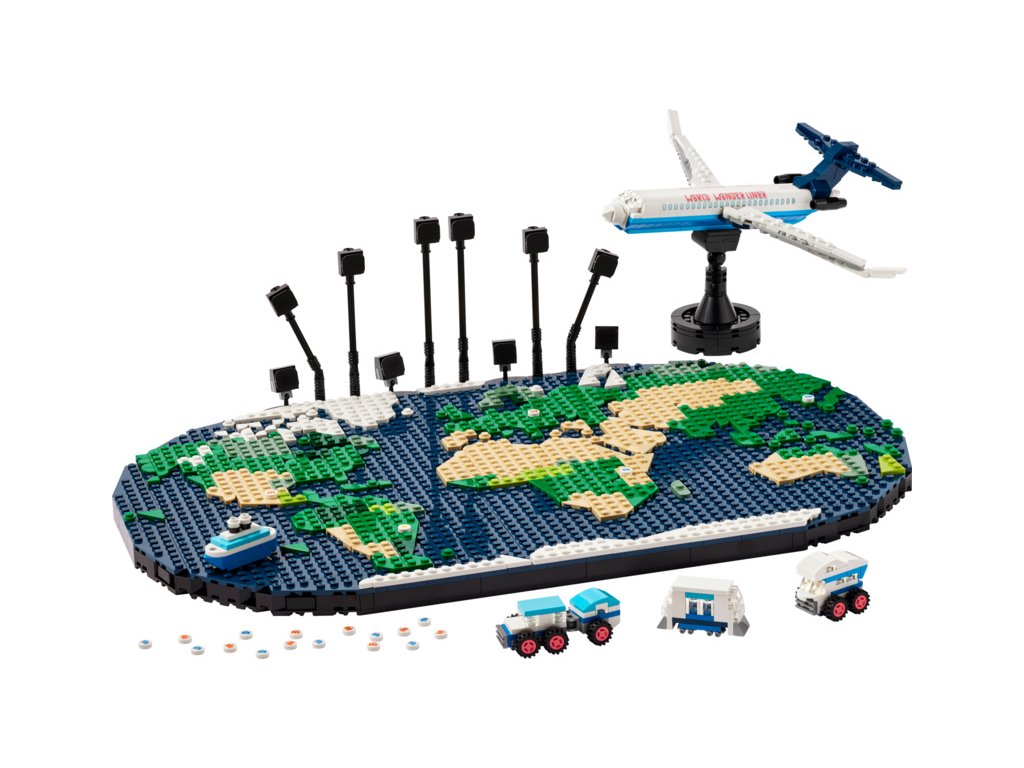 - Stavebnice mapy světa – Tato rodinná stavebnice se skládá z 1 231 dílků a 5 sad návodů na sestavení mapy světa ze 4 částí, sestavitelné letadlo, 4 mikromodely vozidel, držáky na fotografie a spoustu dalšího
