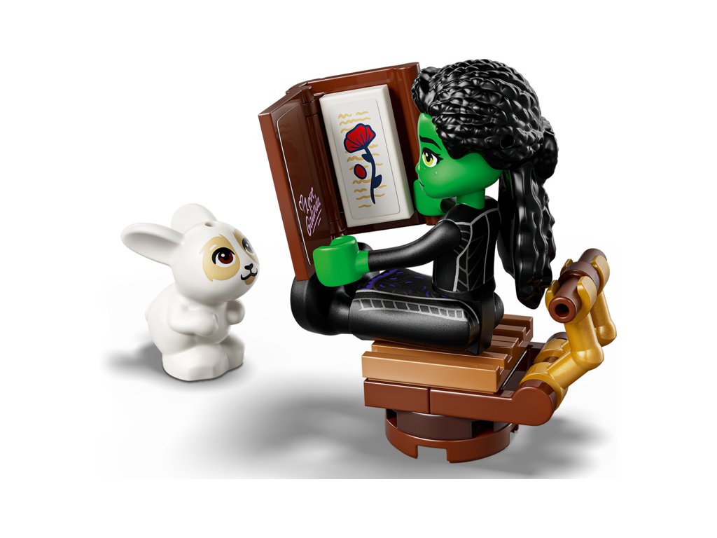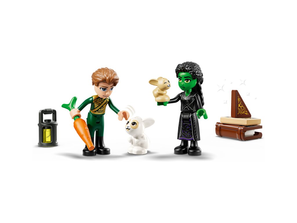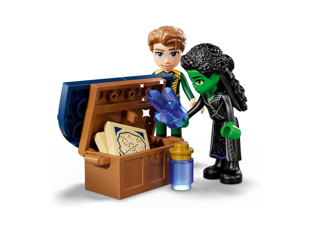 Tato stavebnice pro děti je nabitá detaily, které podnítí kreativní hraní. Fanoušci filmů Wicked nepřehlédnou vlčí mák, který Fiyero daruje Elphabě v Glindině knize. Když připraví šálky s čajem a usadí se u krbu, položí knihu Grimmerie na stůl.