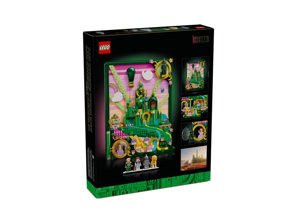 - Stavebnice LEGO® Wicked pro dospělé – Přeneste si domů filmová dobrodružství s touto fantasy dekorací Nástěnné umění: Emerald City, která obsahuje 6 minifigurek, a navíc figurku Tota a řadu skrytých prvků