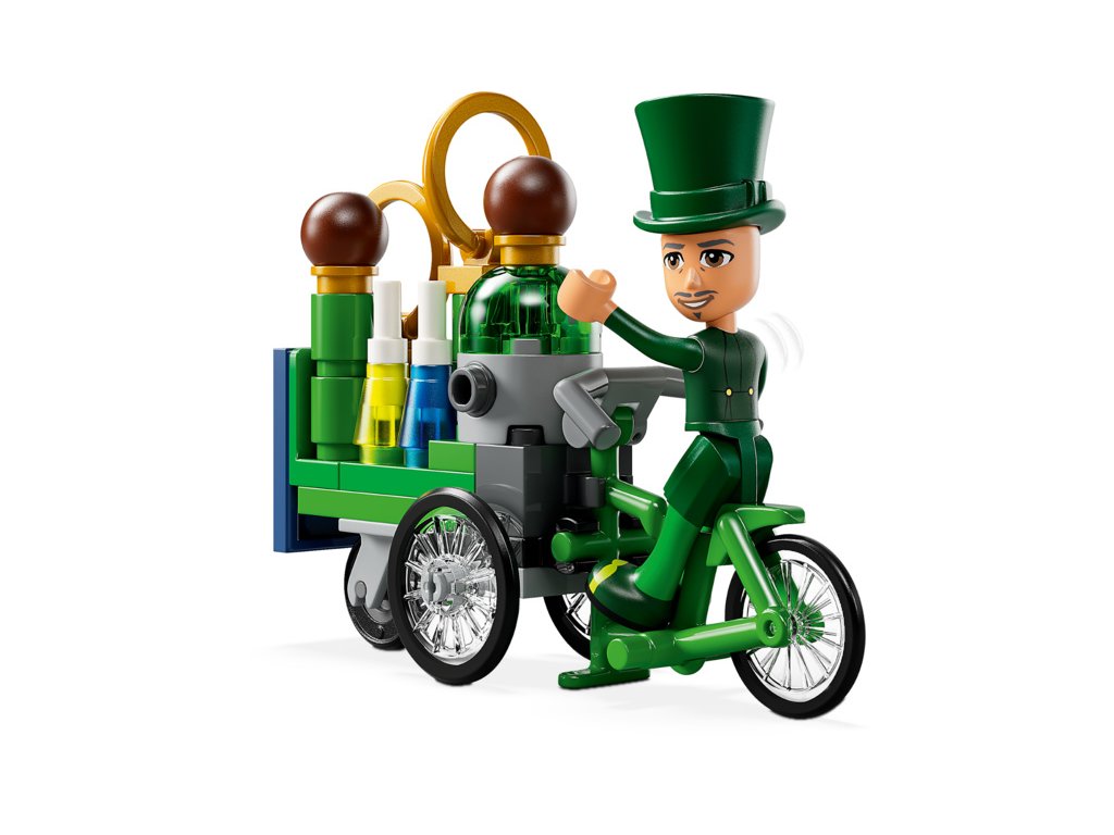 Součástí této fantastické hračky je 5 minipanenek, se kterými si děti připomenou scény o přátelství z filmu Wicked (Čarodějka). Minipanenky Fiyera, Glindy a Elphaby si projdou obchod s kosmetikou, užijí si zábavu při nakupování dortů nebo si vychutnají kávu od prodejce se stánkem na kole. Další herní inspiraci děti získají naskenováním skrytého QR kódu, díky kterému získají přístup k jedinečnému online obsahu LEGO Wicked.