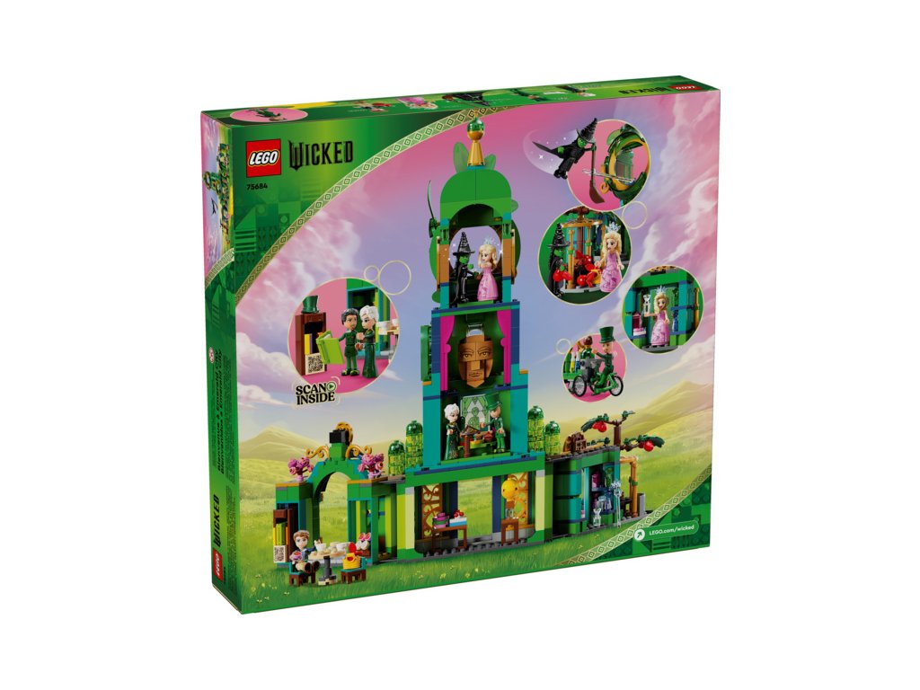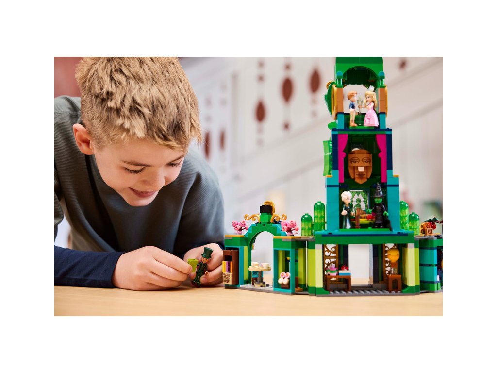 - Sběratelská hračka Vítejte v Emerald City – Děti se vydají stavitelské dobrodružství LEGO® a připomenou si s touto třípatrovou věží slavnou scénu ze světa filmu Wicked (Čarodějka)