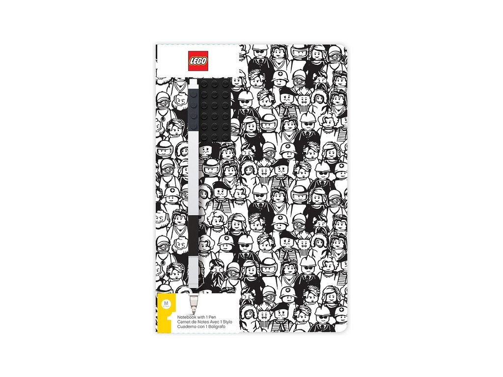 Opravdu vychytaný linkovaný zápisník s LEGO motivem Minifigure Brick na přebalu a s LEGO destičkou 4x6 na přední straně pro přichycení LEGO pera. Zápisník v tvrdých deskách s převlečnou gumou proti samovolnému otevření. Rozměr: A5, stran: 96.