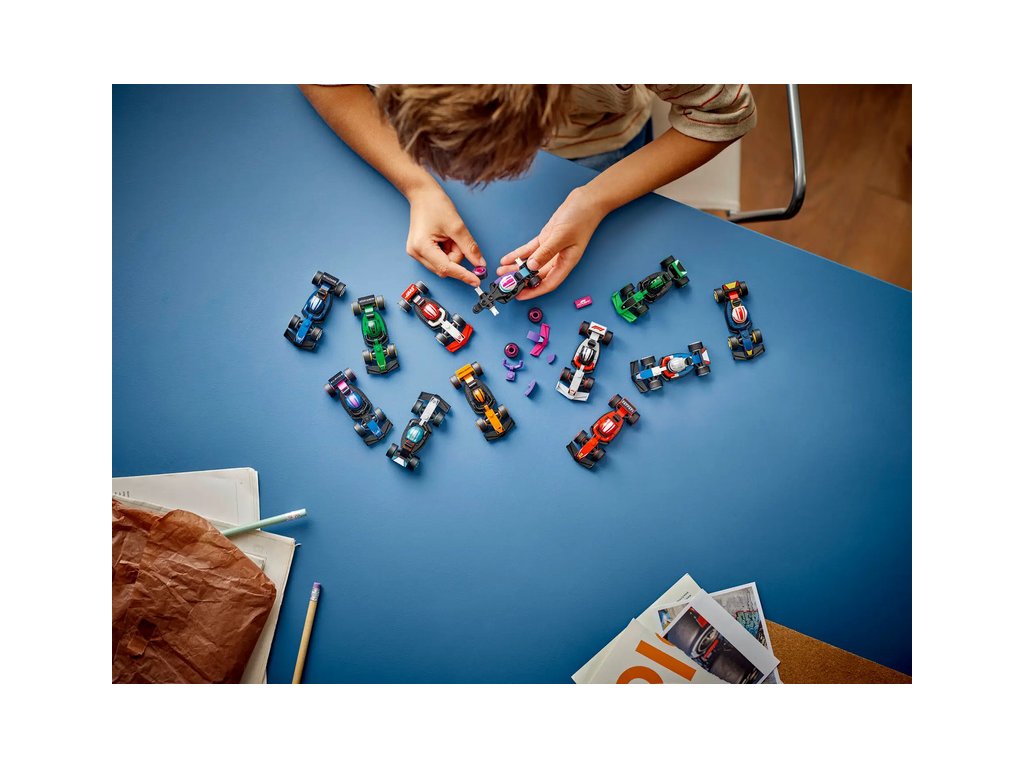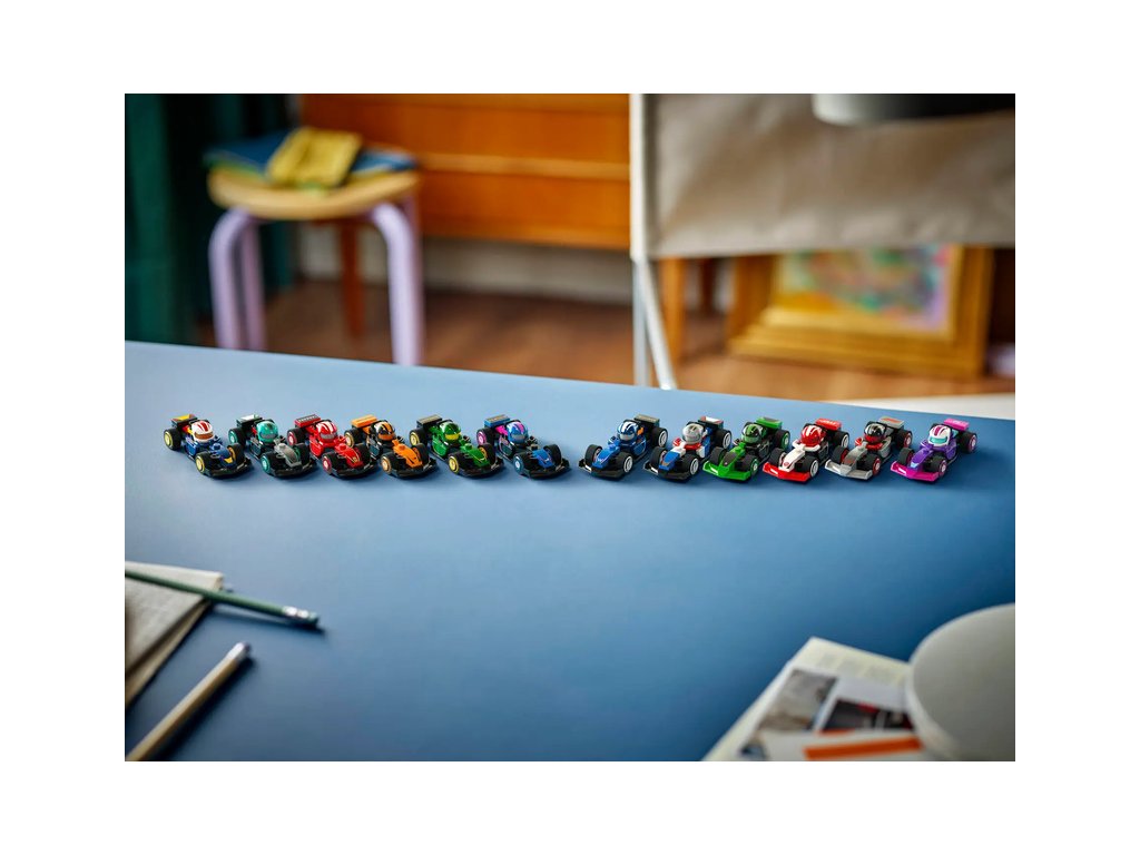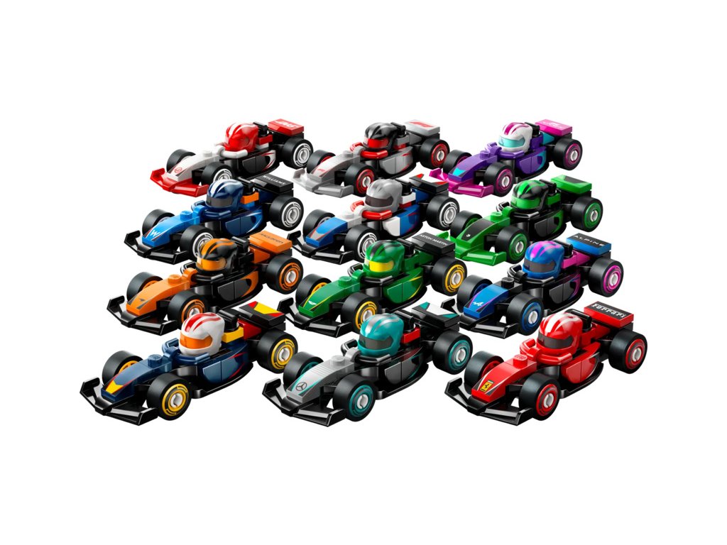 V každé stavebnici s vozidlem je 1 překvapivý sběratelský závodní vůz LEGO F1 a celkem jich je k sebrání 12: vůz F1, vůz F1 ACADEMY™ a 10 vozů týmů Formule 1: RB20, Mercedes-AMG, Ferrari, McLaren, Aston Martin, Alpine, Williams, VCARB, Sauber a Haas.