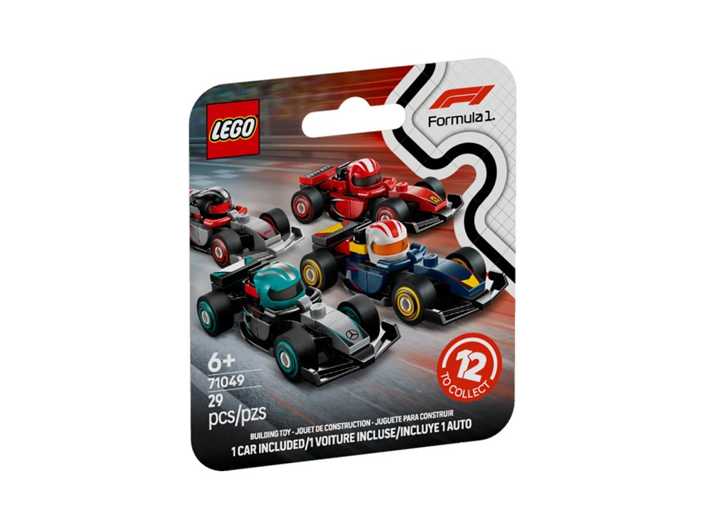 - Sběratelské závodní auto F1® – Děti od 6 let si mohou s těmito sběratelskými závodními vozy LEGO® F1 zažít vzrušující akci, přičemž v každé záhadné krabici je 1 stavebnice vozidla.