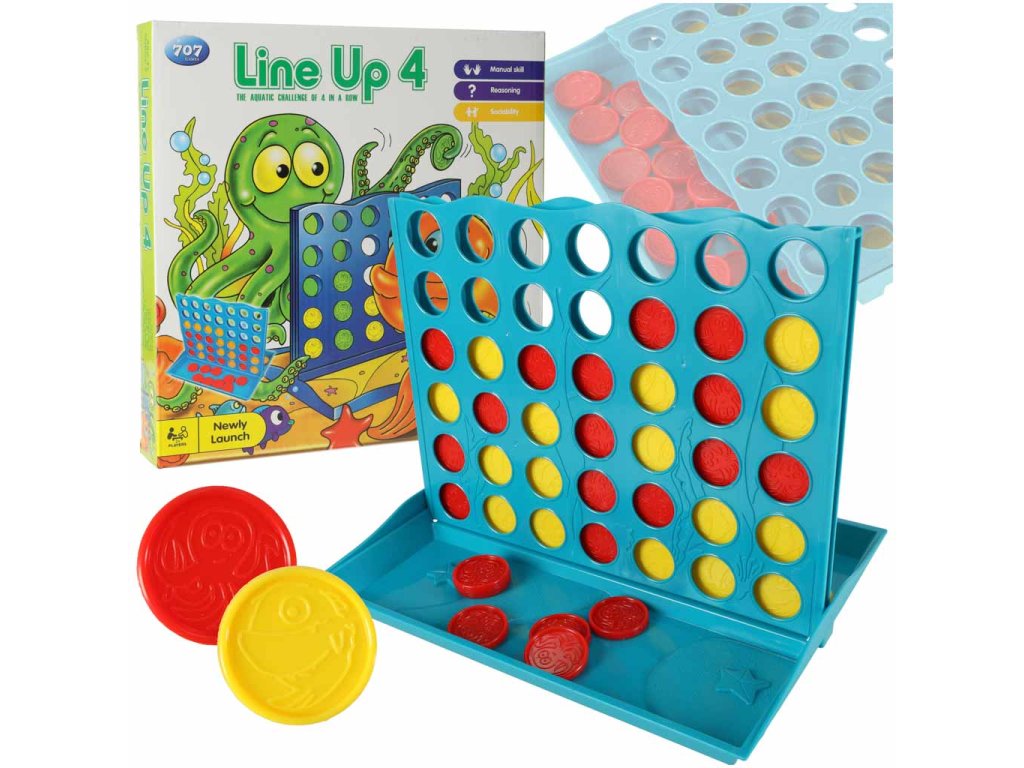 Hra „4 v řadě“ je vzrušující výzva, která rozvíjí plánování a strategické myšlení! Pravidla jsou jednoduchá – vyhrává ten, kdo jako první uspořádá čtyři žetony do řady (svisle, vodorovně nebo diagonálně).