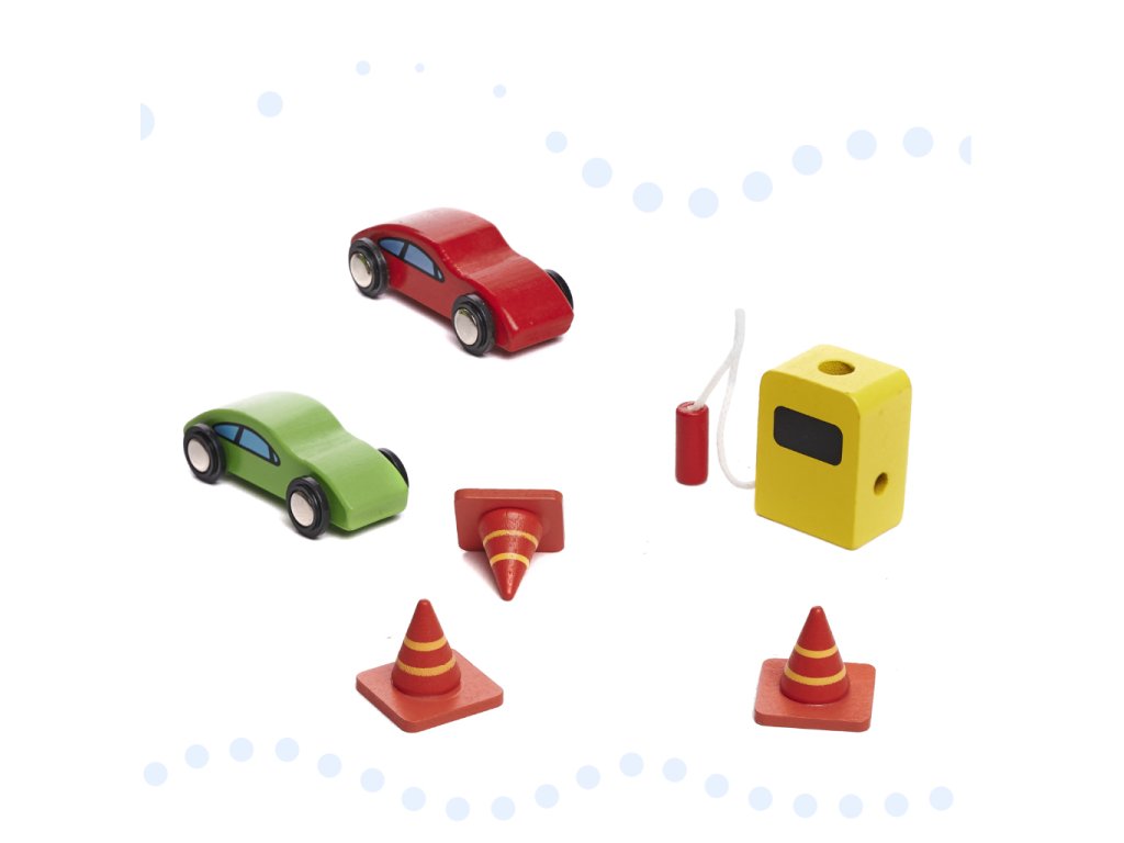 Toto parkoviště dětem přináší svět městského ruchu v bezpečné, dřevěné podobě.