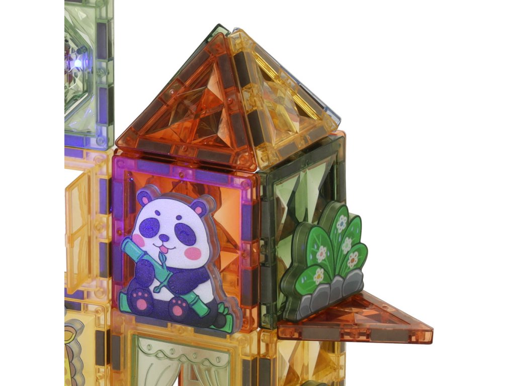 Sada 90 magnetických kostek, které děti uvádějí do kreativní hry. Skládá se z dílků v různých barvách a tvarech, které umožňují vytvářet trojrozměrné konstrukce a ploché obrázky. Kostky se k sobě připojují díky vestavěným magnetům. Barevné figurky zvířat a svíticí prvky dodávají hře rozmanitost. Hračka podporuje rozvoj motorických dovedností a stimuluje dětskou kreativitu.