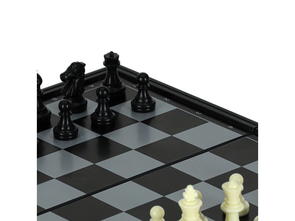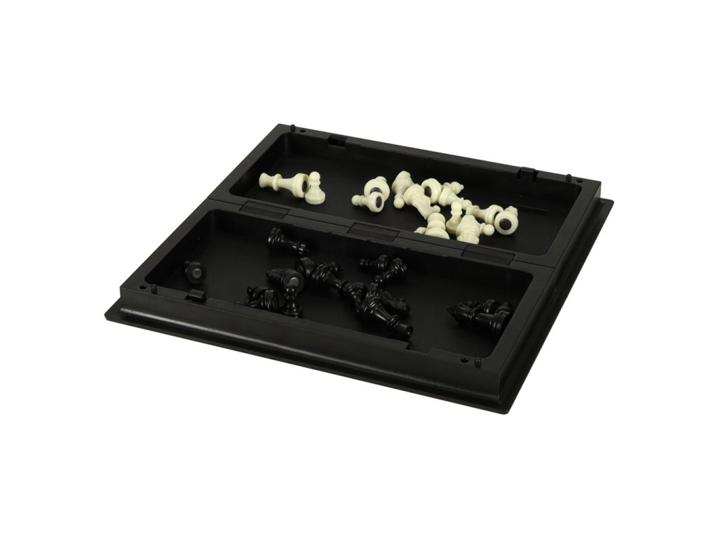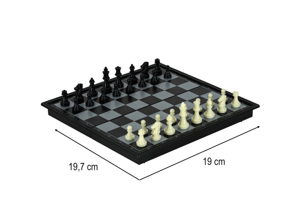 Šachy jsou oblíbenou logickou hrou, ve které se hráči snaží eliminovat klíčové figury soupeře dodržováním určitých pravidel. Hrací deska o rozměrech 19 x 19,7 centimetrů je vyrobena z plastu a má zabudované magnety, které stabilizují pěšce na hrací desce a pomáhají hrát hru na různých místech. Po skončení hry slouží hrací deska jako úložný prostor pro 32 pěšců, což umožňuje jejich pohodlné uložení. Hra podporuje rozvoj strategického a taktického myšlení.