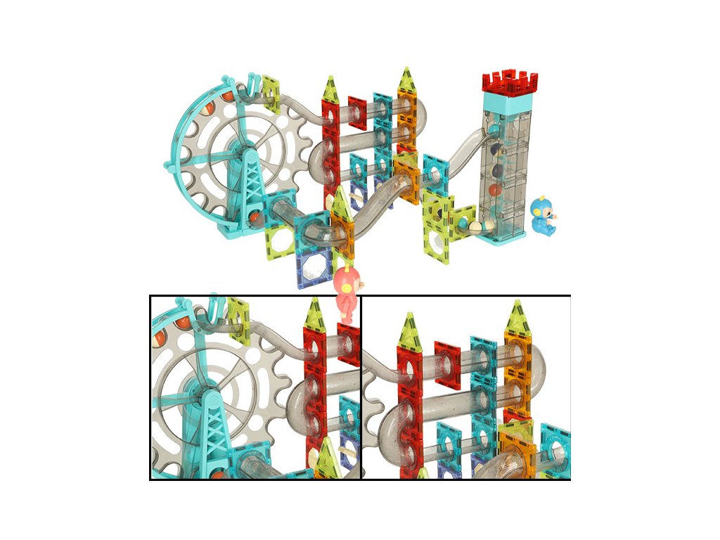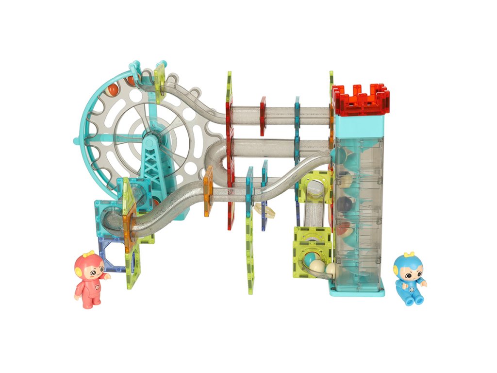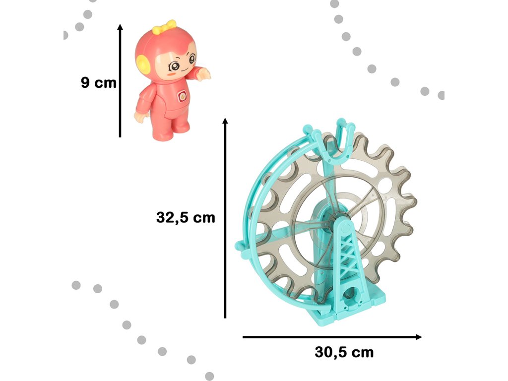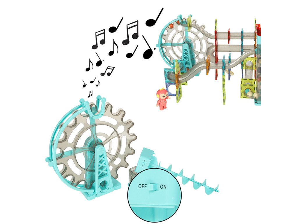 Aby byla dráha jedinečná, sada bude obsahovat dvě elektrické konstrukce – ruské kolo a výtah. Díky nim se kuličky budou moci efektivně pohybovat po celé dráze. Ruské kolo navíc hraje veselou melodii, která zábavu ještě více zpříjemní!