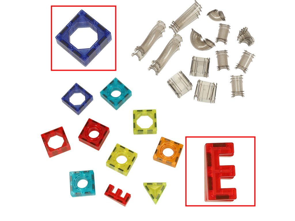 Největším plusem této sady je však to, že ji můžete použít k postavení fantastické kulové dráhy! Šestnáct kuliček ze sady se bude moci pohybovat složitými chodbami dráhy a poskytnout tak spoustu zábavy malému inženýrovi, který má na starosti stavbu celé dráhy!