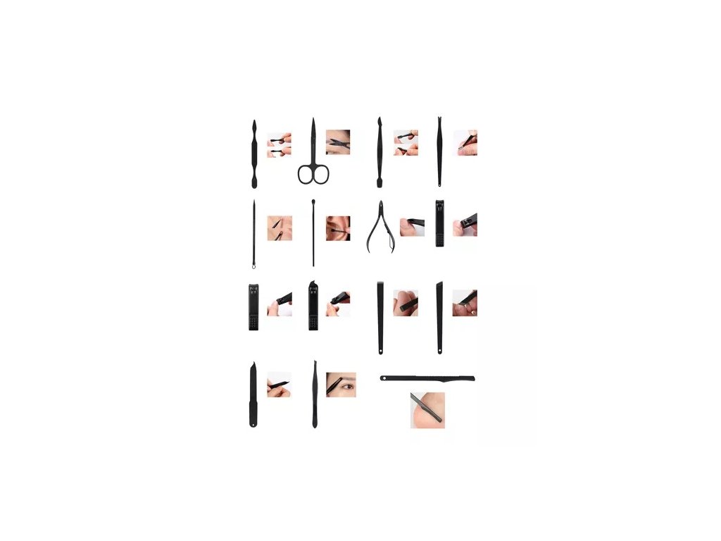 - Sada se skládá ze 16 prvků. Pouzdro + 15 nástrojů; pro péči o ruce, nohy a obličej. .