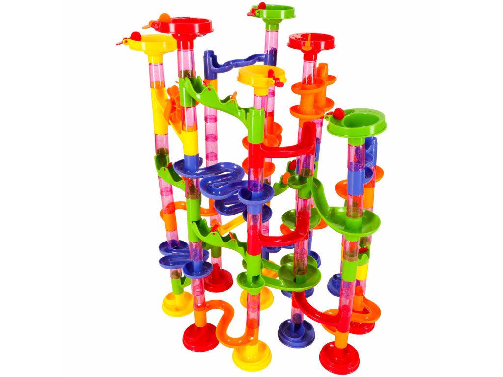 Sada se skládá z mnoha barevných prvků, které vám umožňují volně navrhovat a stavět kulovou dráhu.