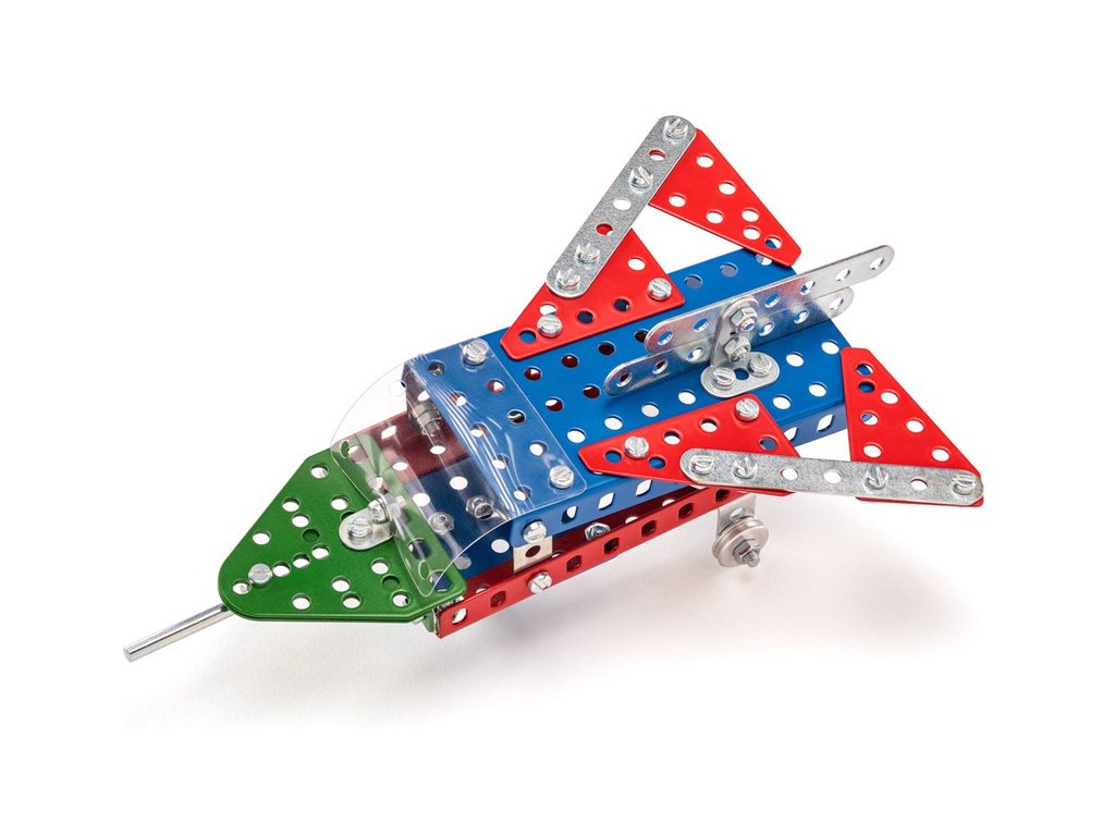 Česká kovová konstrukční stavebnice Merkur raketoplán 015 obsahuje 195 dílků. Sestavte si model raketoplánu a mnoho dalších. Vhodné pro děti od 5 let.