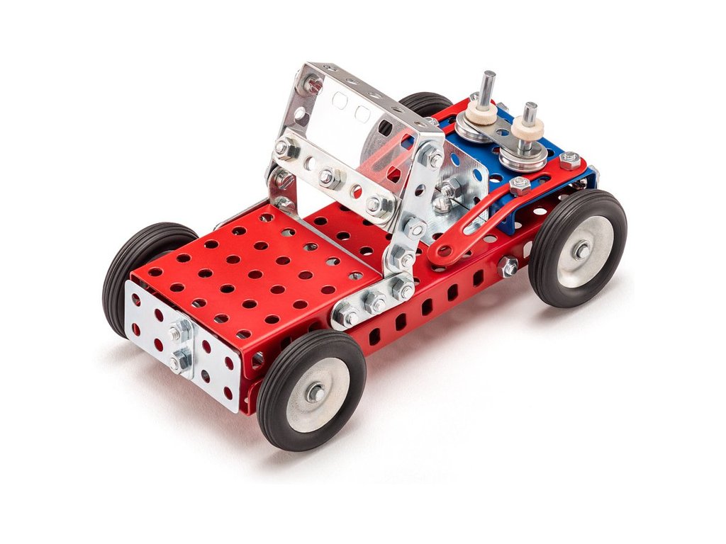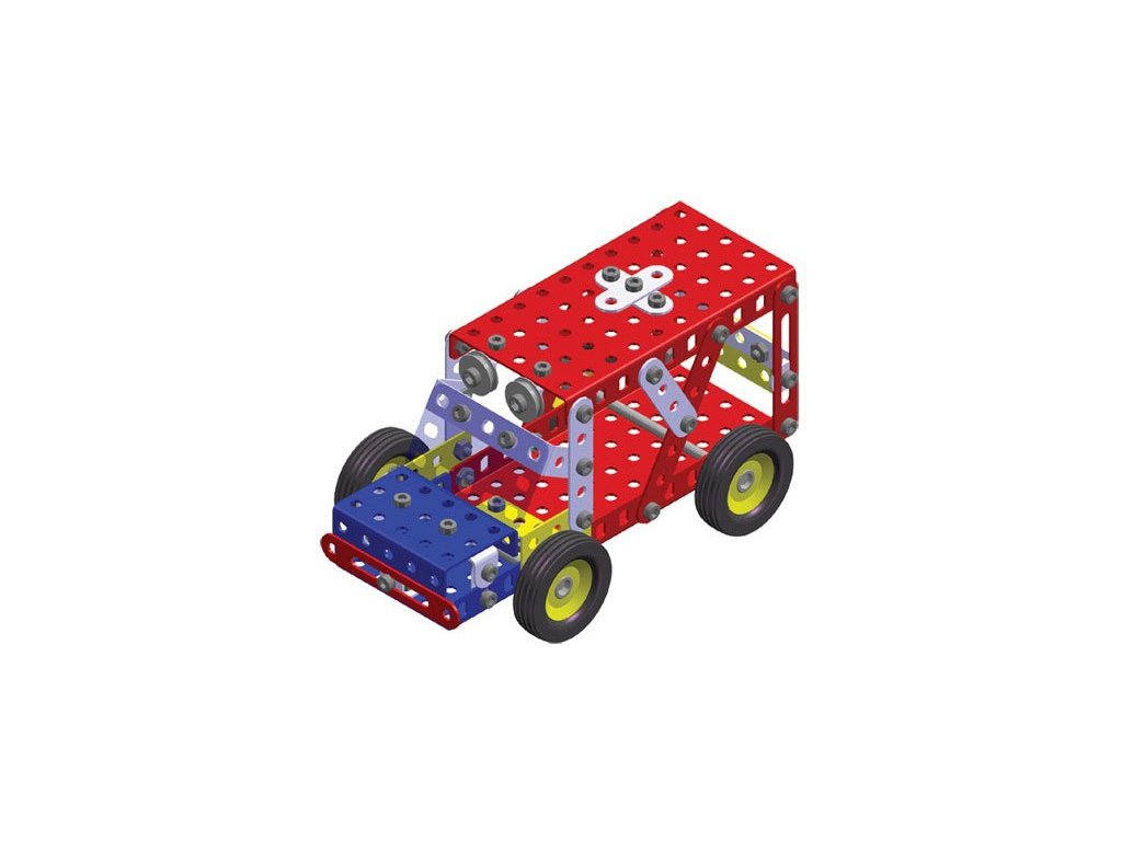 Nejznámější česká kovová stavebnice Merkur terénního autíčka Buggy. Malí konstruktéři mohou sestavit i model dle svých představ, fantazii se meze nekladou. Obsahuje 206 dílků. Vhodné pro děti od 5 let.