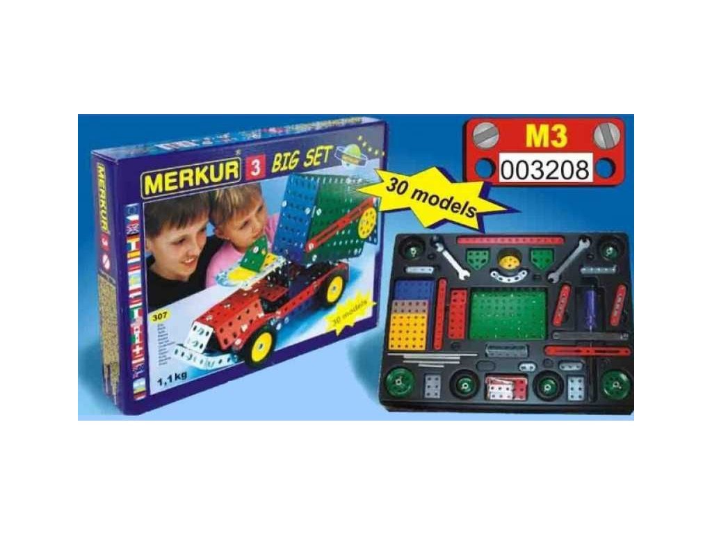 Česká konstrukční stavebnice pro malé i velké montéry. Merkur velká sada 3 obsahuje 273 dílků a návod na stavbu 30 modelů. Vhodné pro děti od 5 let.