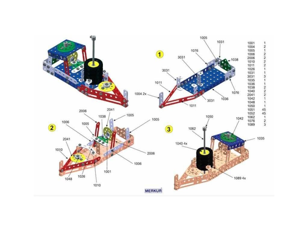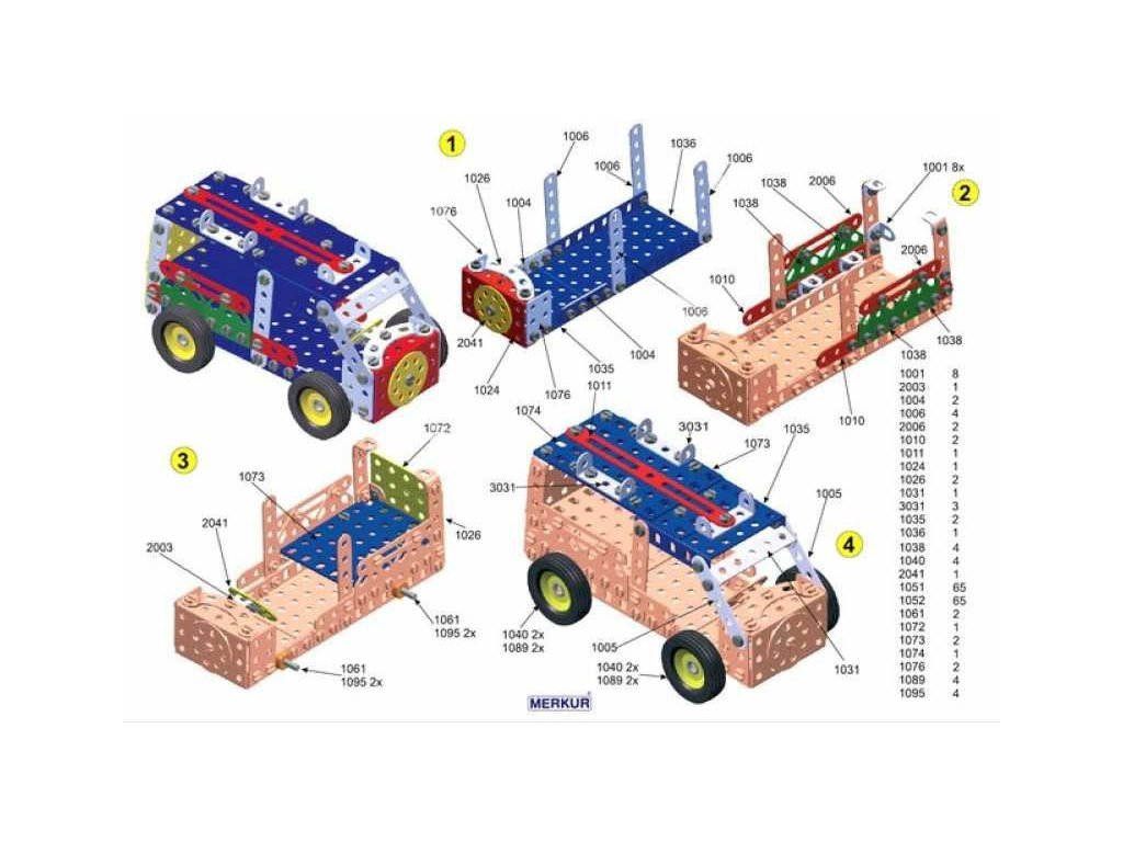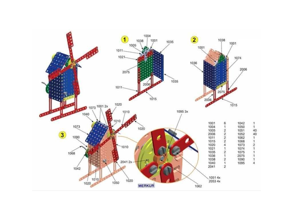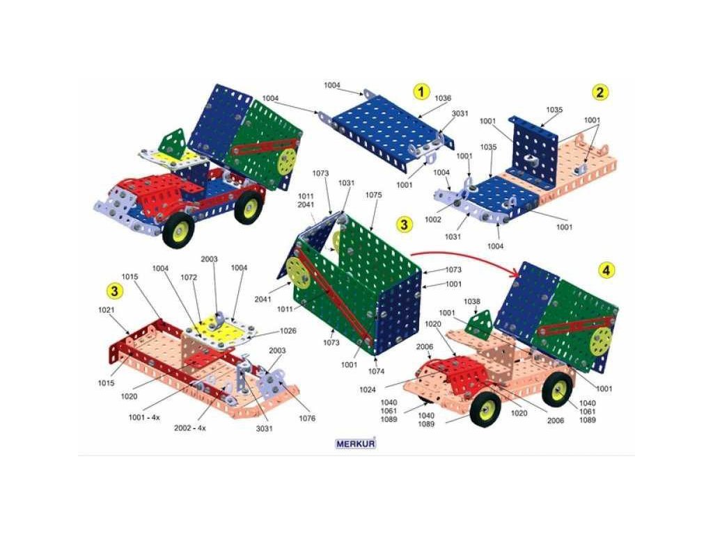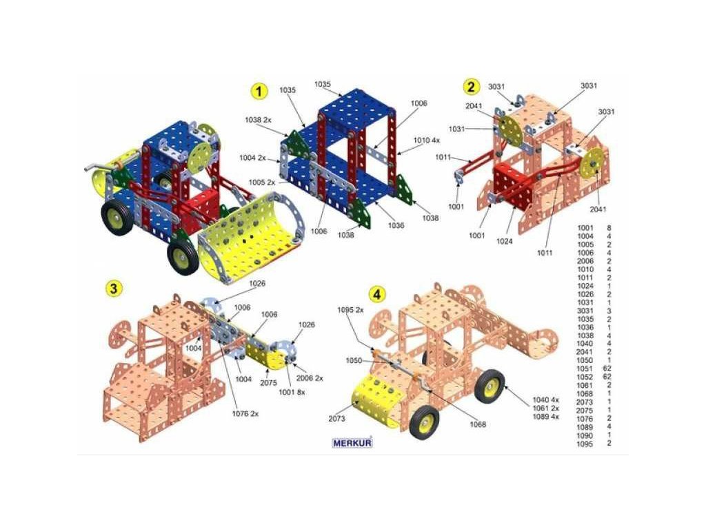 Univerzální jednovrstvá klasická stavebnice – nejmenší z velkých stavebnic. Obsahuje základní sestavu dílů jako jsou pásky, oblouky, plotničky, úhelníky, malá kola, pneumatiky atd. včetně šroubků a matiček. Součástí stavebnice je knížka s návodem na stavbu 30 různých modelů jako je pásová pila, vagón, jeřáb, nákladní auto, výtah atd. Na začátku návodové knížky jsou popsány a zobrazeny základní úkony jako spojování dílců, použití kontramatky, řešení lanových převodů, uložení hřídelí v ložiscích atd.