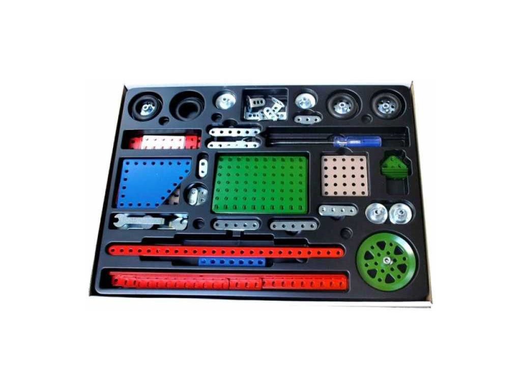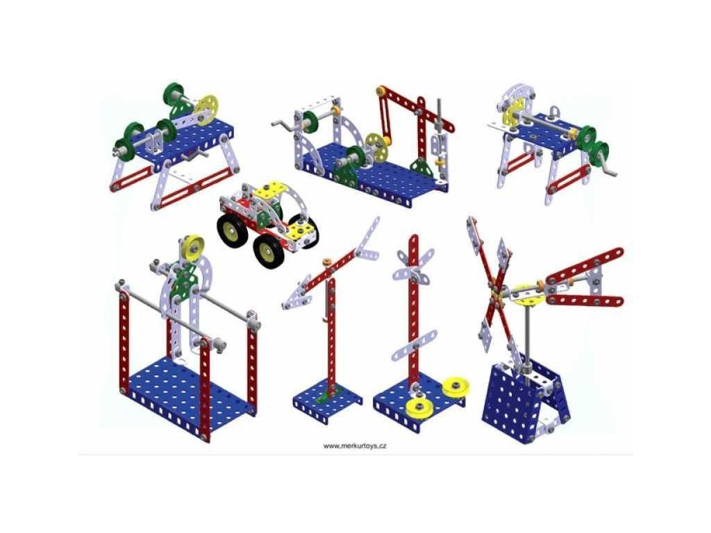 Česká kovová stavebnice MERKUR velká sada 4 je univerzální velká stavebnice, která obsahuje mimo základní sestavu dílů také součástky nutné pro stavbu nákladních automobilů, formulí a letadel. Obsahuje 609 dílků. Vhodné pro děti od 5 let.