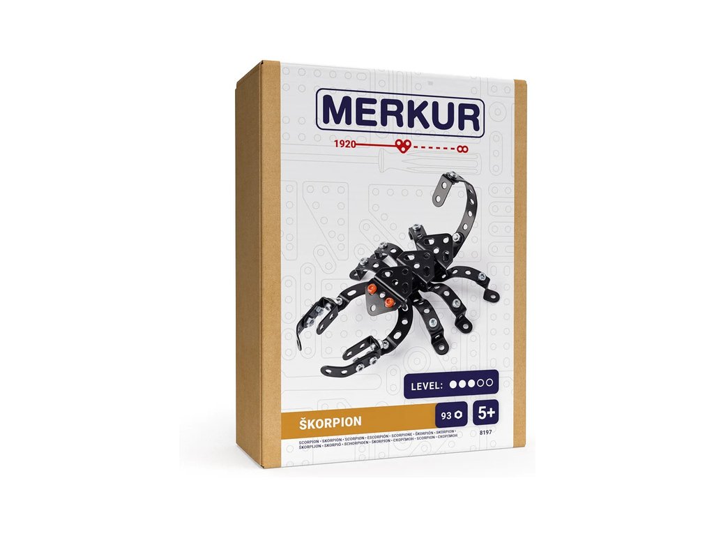 Klasická česká stavebnice Merkur - kovový model škorpiona. V balení najdete podrobný návod, Merkur sadu nářadí a unikátní Merkur díly. Merkur díly jsou univerzální a tak vás neomezí v jakékoli modifikaci a nápadu. Stavebnici tak můžete sestavit podle návodu nebo podle svých představ.