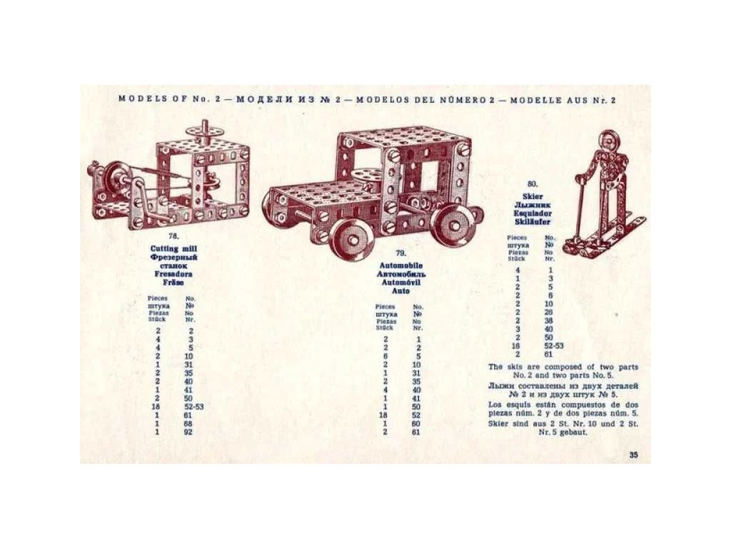 Součástí stavebnice MERKUR CLASSIC C04 je 94-stránková návodová knížka vyrobená ve stylu třicátých let. Velká návodová knížka je koncipovaná pro stavebnice MERKUR Classic C03, C04, C05 - 183 modelů. Návody jsou obrázkové a doplněné původním textem v anglickém, německém, španělském a ruském jazyce. Stavebnice obsahuje 213 dílků. Věk: 6+. Nevhodné pro děti mladší 3 let.