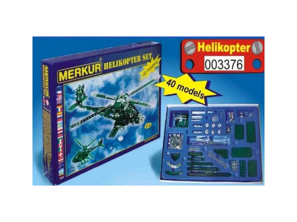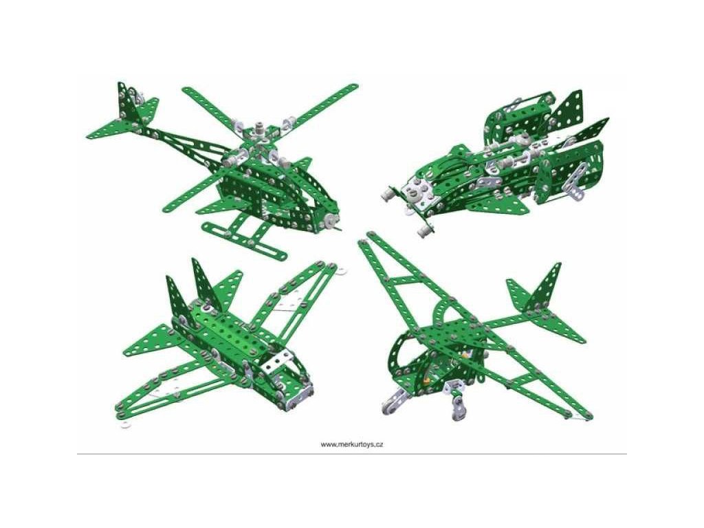 Stavebnice Merkur s vojenskou tématikou zaměřená na stavbu bojového vrtulníku. Obsahuje 515 dílků. Návod pro stavu 40 modelů vojenské techniky. Vhodné pro děti od 5 let.
