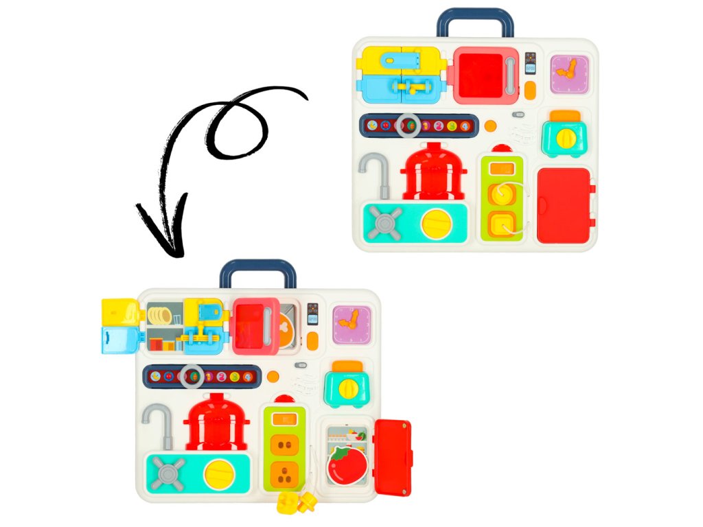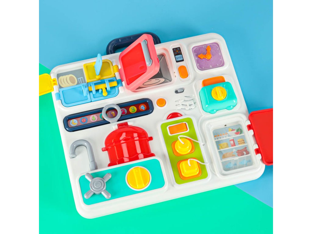 Montessori smyslová manipulační deska - kuchyňský kufřík