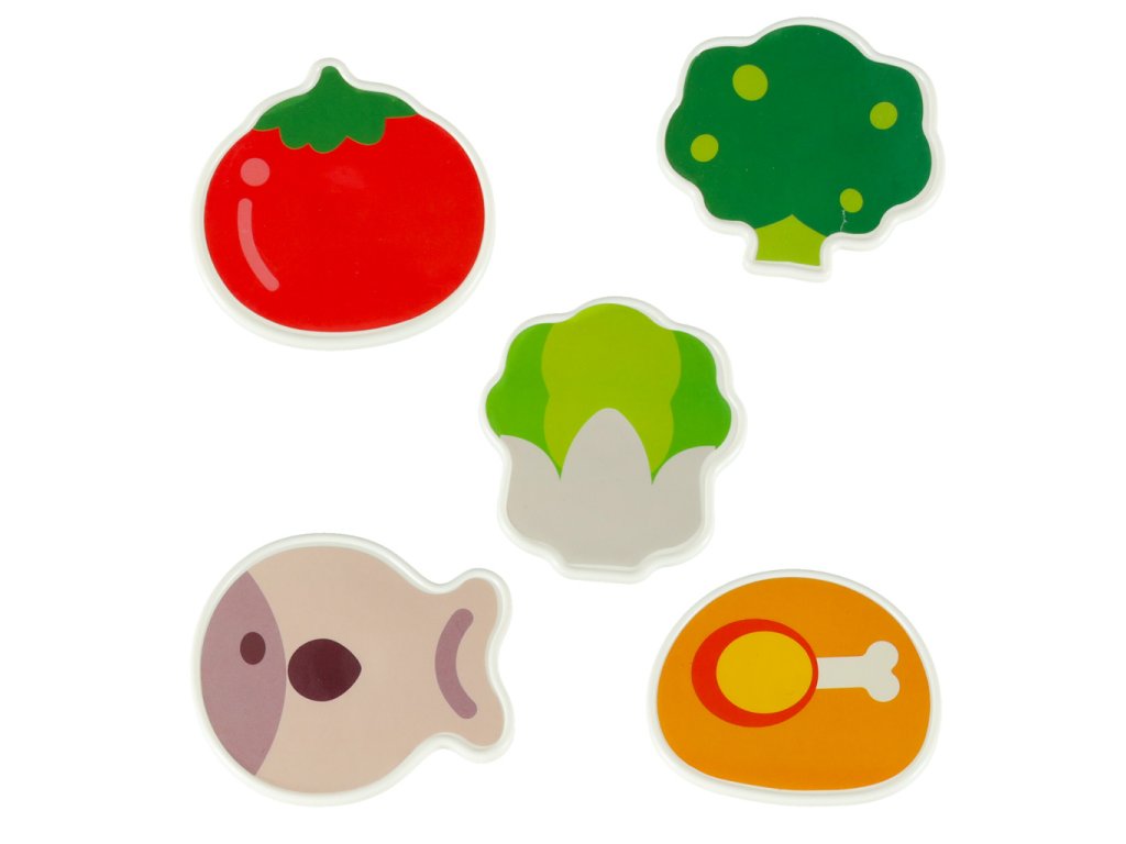 • 5 senzorických prvků: zelenina, maso a ryby – ideální pro učení se rozpoznávání potravin a vytváření příběhů,