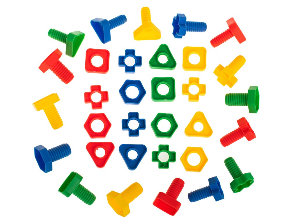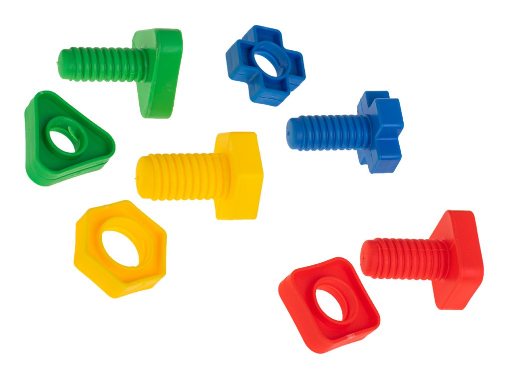 Zábava spočívá v zašroubování šroubků do odpovídajících matic.