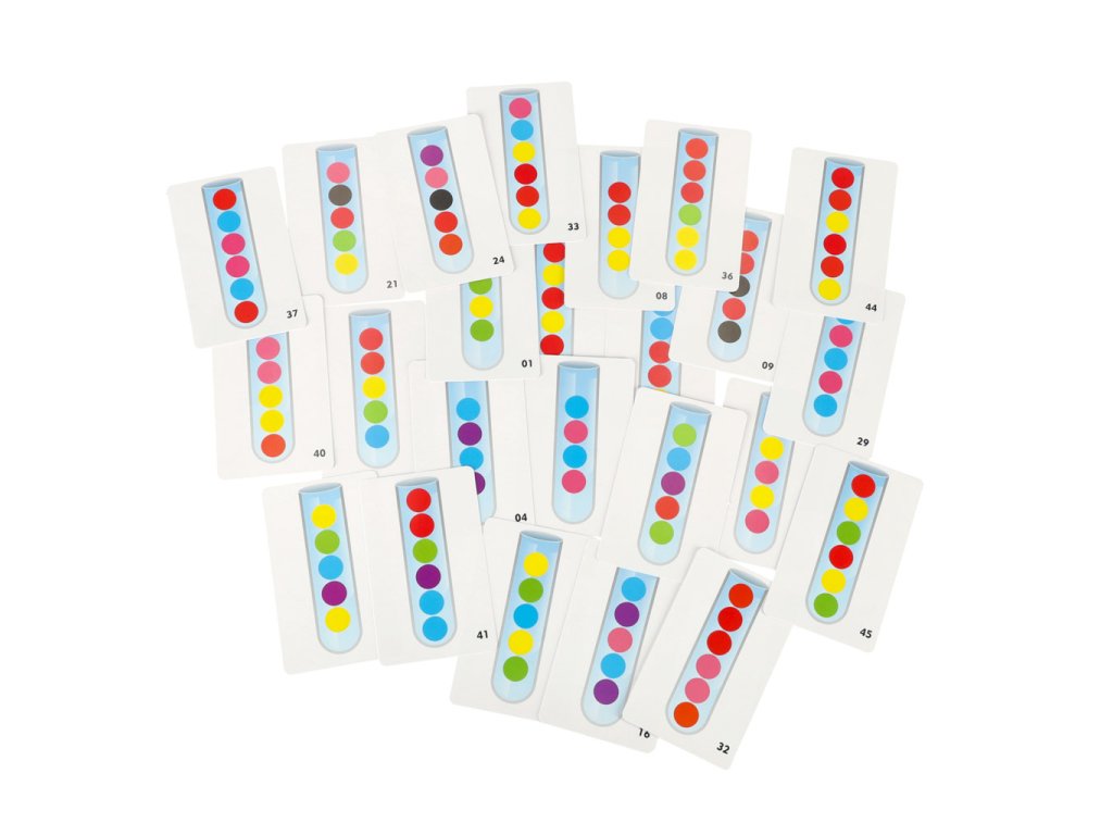Inspiraci poskytne 24 oboustranných karet. Zobrazují vzory, které je třeba uspořádat ve zkumavce. Úkol se může zdát jednoduchý, ale zpočátku bude jistě náročný!
