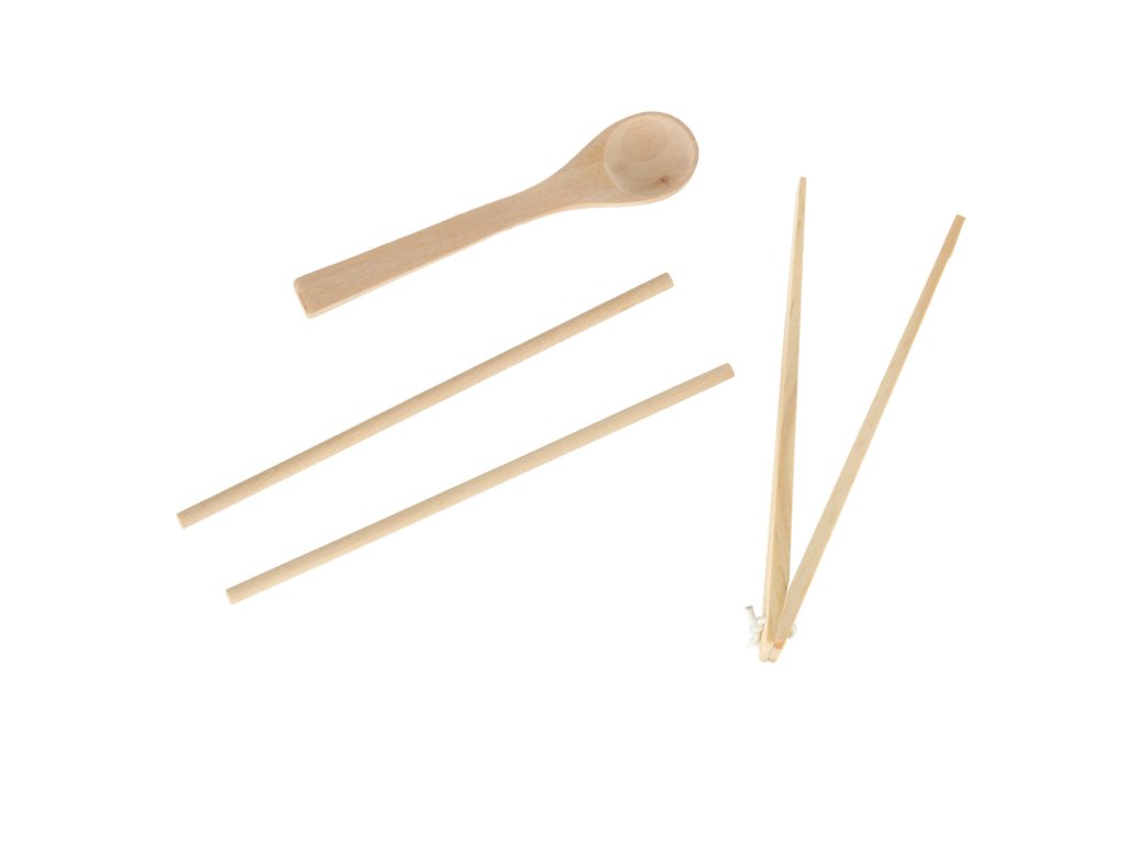 Sada obsahuje příslušenství, jako je lžíce, kleště a hůlky, které představují další výzvu – zvedání kuliček jimi rozvíjí jemnou motoriku, přesnost pohybu a koordinaci ruka-oko.