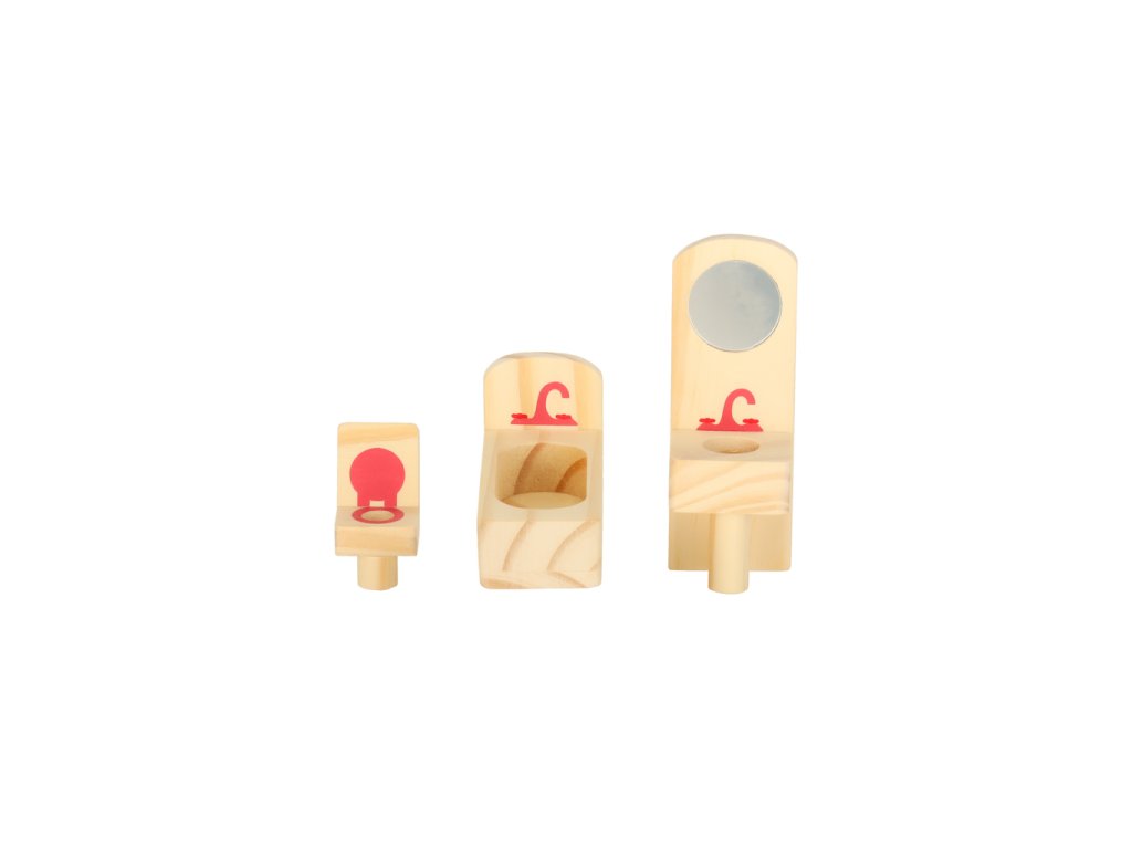 Nábytek do domečku pro panenky je vyroben z přírodního dřeva. Má certifikaci CE.